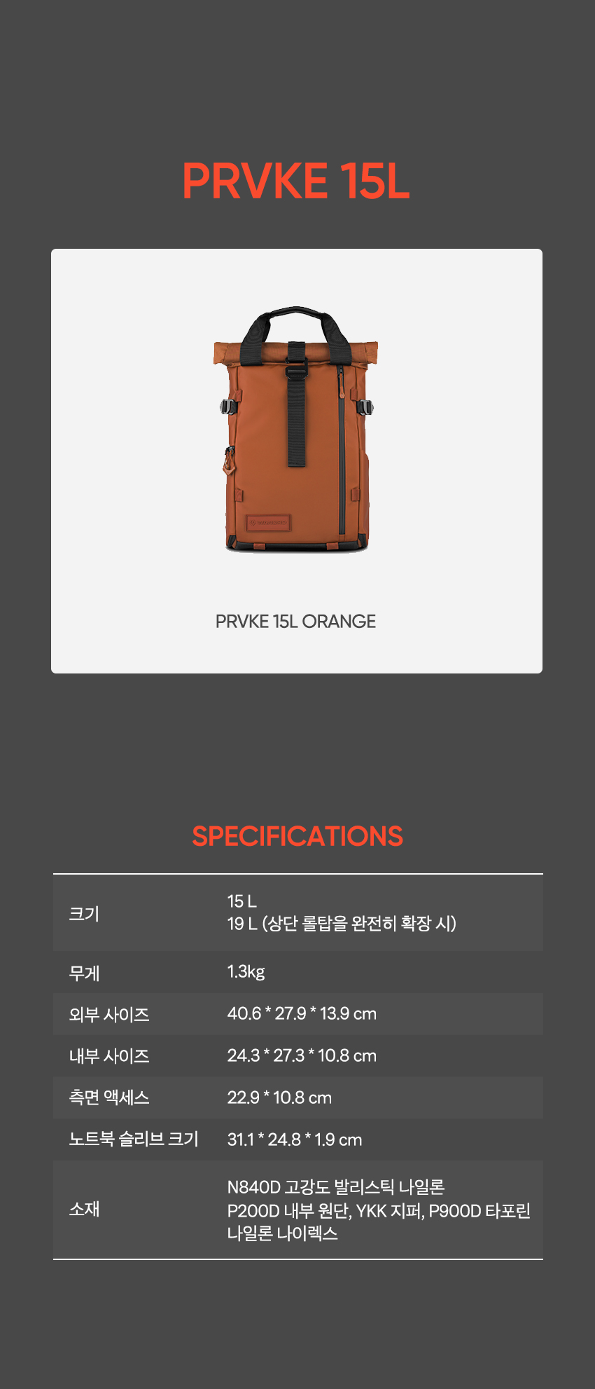 | 종류 | PRVKE 15L (Orange)_V4 |