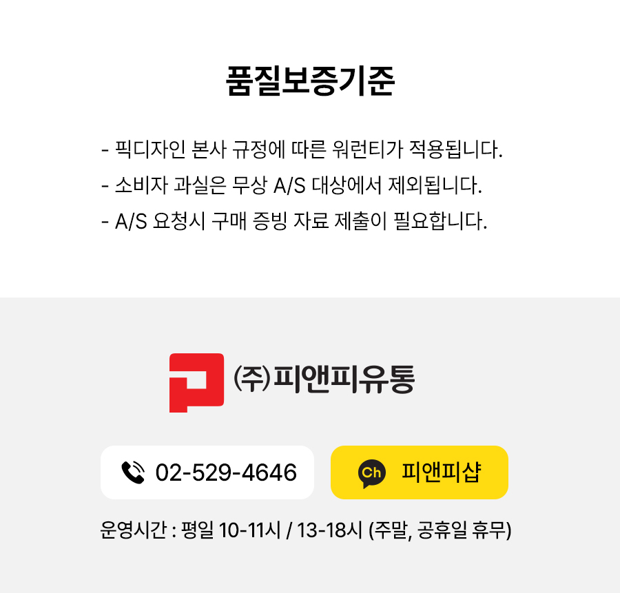 ※ 상품 문의 혹은 AS 문의는 공급업체의 고객센터로 문의 바랍니다. (공식수입사(피앤피유통) 02-529-4646)