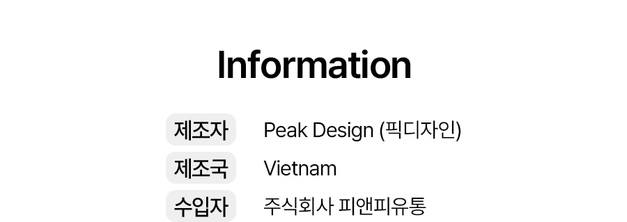 | 제조사/수입사 | PEAK DESIGN / 주식회사 피앤피유통 |