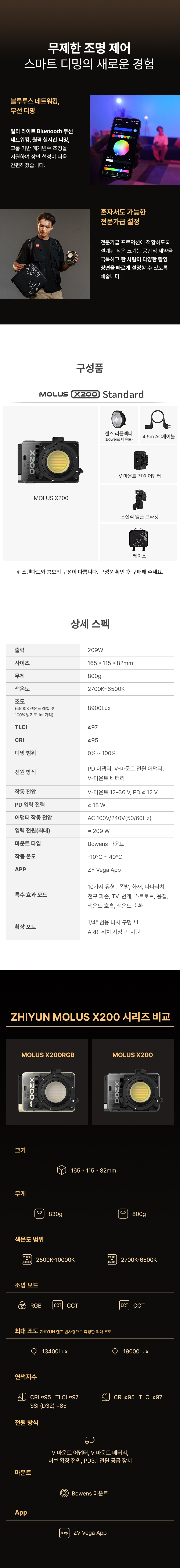 | 품명 및 모델명 | ZHIYUN MOLUS X200 COB Light |