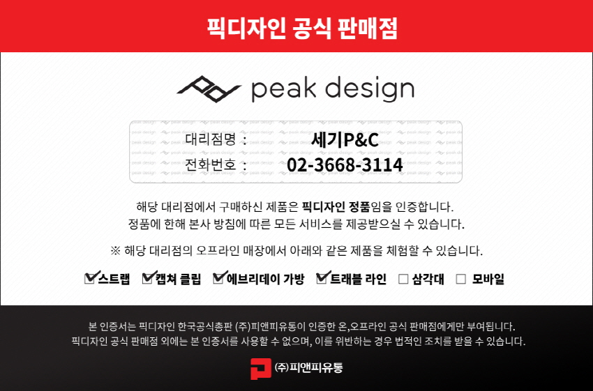 | 제조사/수입사 | PEAK DESIGN / 주식회사 피앤피유통 |