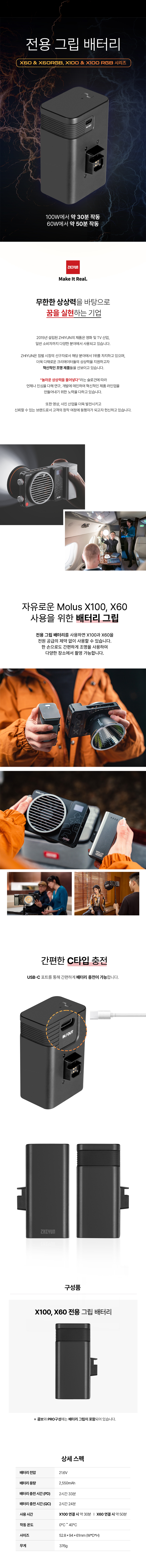 | 품명 및 모델명 | MOLUS X100 (조명) / MOLUS X100, X60 그립형 배터리 |