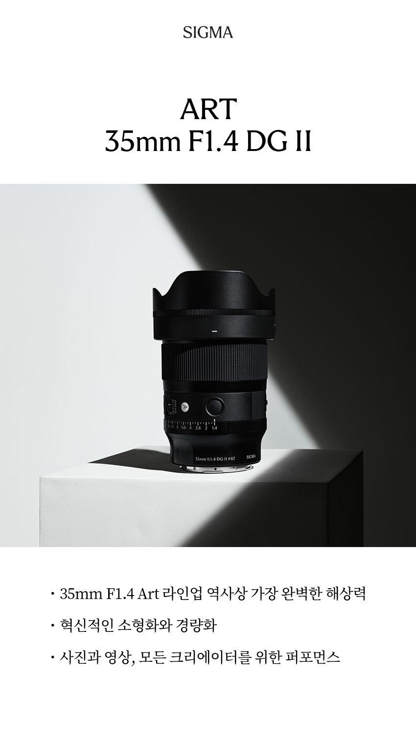 SIGMA의 35mm F1.4 DG HSM | Art의 계보를 잇는 새로운 렌즈 35mm F1.4 DG II | Art 바로 언박싱 해봤습니다. 광학의 완성도는 더욱 강력하게, 무게와 크기는 컴팩트하게.