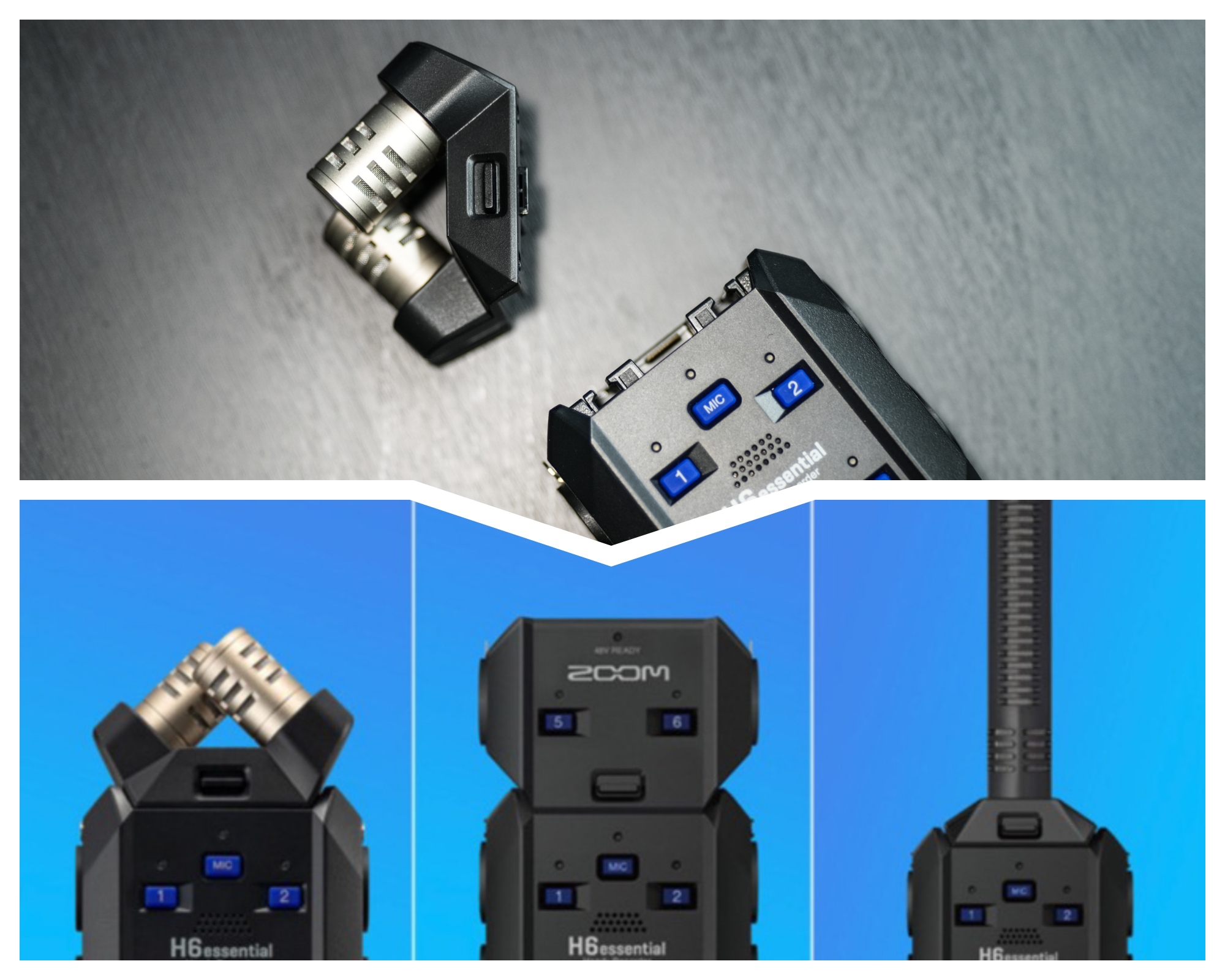 더 다양한 환경에서 사용하길 원한다면 ZOOM H6 essential 모델을 선택할 수 있습니다. 기존의 ZOOM 핸디 레코더의 플래그십 모델 콘셉트 그대로 마이크를 교체할 수 있는 다양한 옵션이 있어 기본 XY 마이크부터 추가 XLR/TRS 2개 단자, 지향성 스테레오 마이크 등을 교체 가능합니다. 하나의 레코더로 다양한 종류의 수음이 가능하며 여분의 오디오 채널이 있어 휴대용 오디오 믹서 역할도 뛰어납니다.