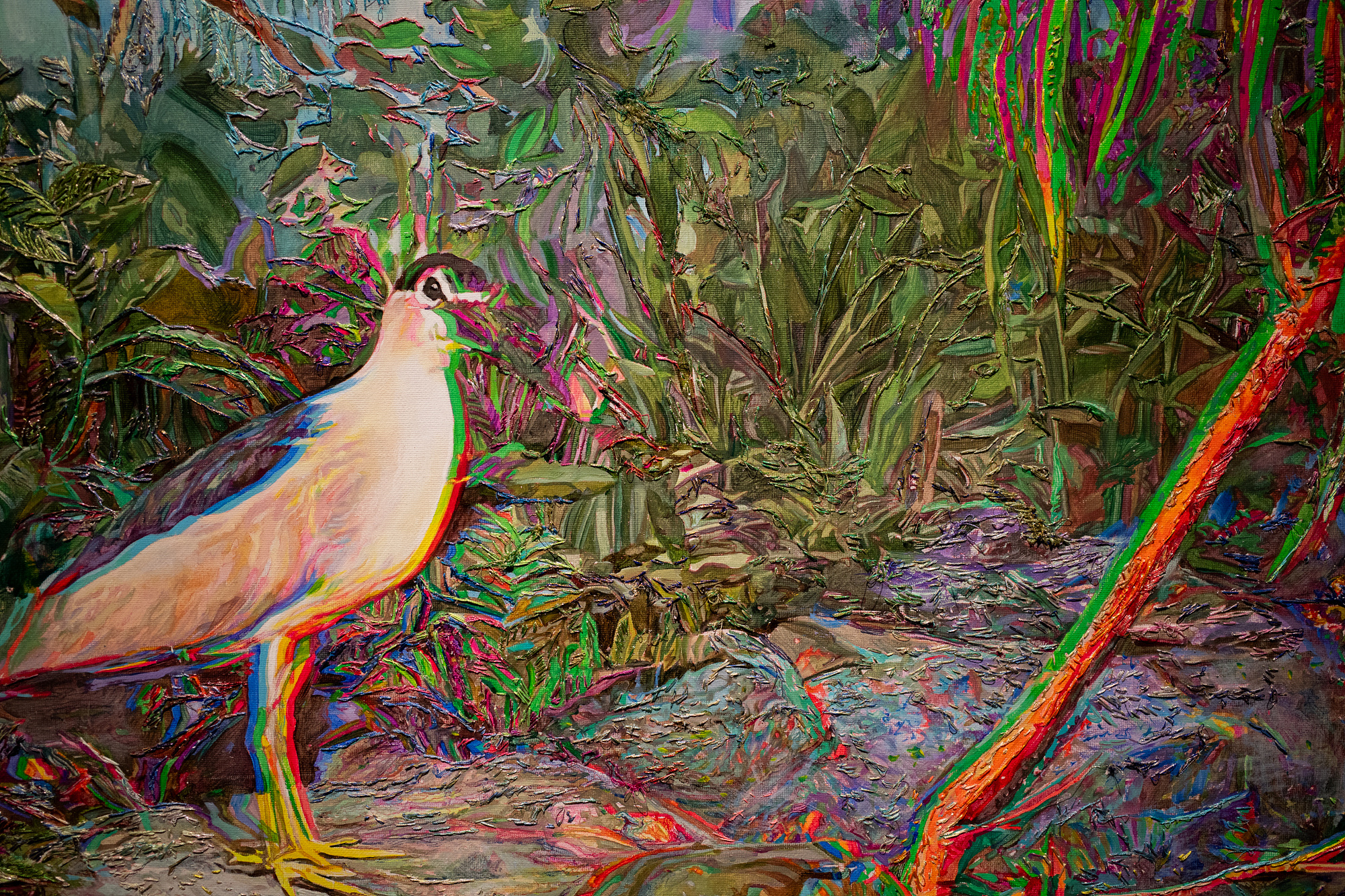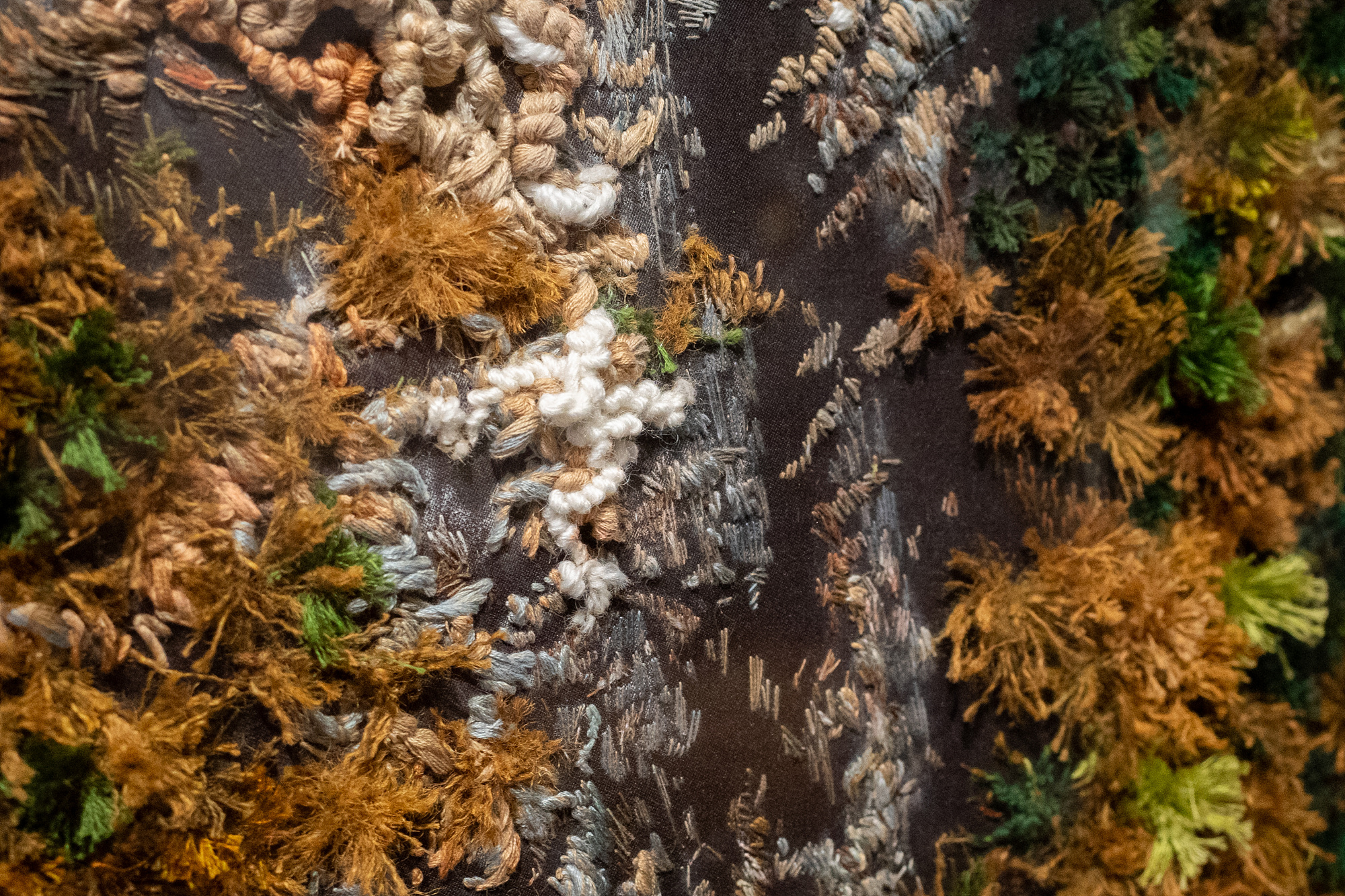 또 현대로 올수록 자수를 놓는 캔버스가 다양해지는 것도 재미있습니다. 예컨대 강신희의 <봄 숲>은 담요에 자수를 둔 작품이고 벨벳에도 자수를 둘 수 있더라고요.