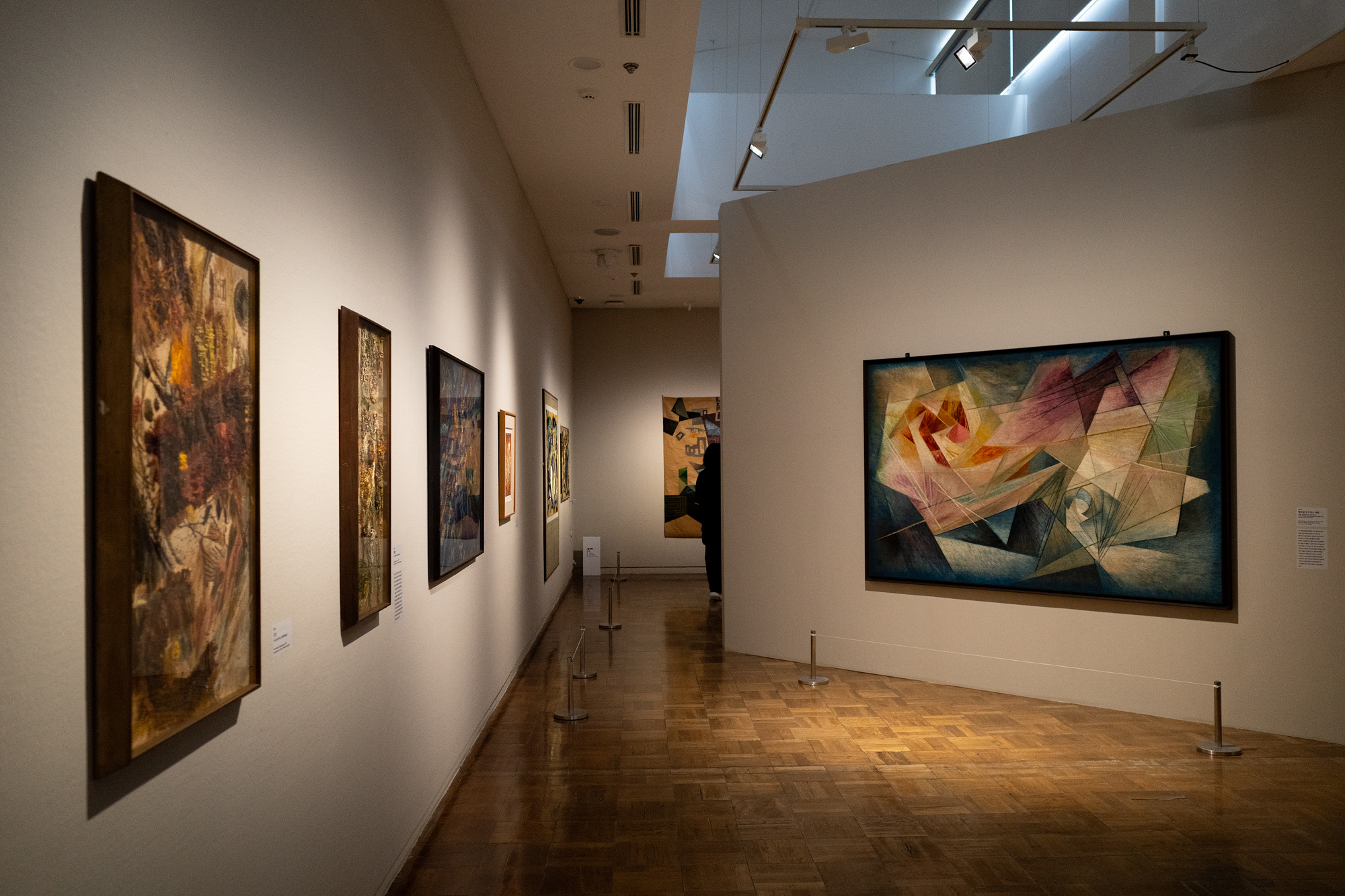 2차 세계대전 이후 추상이 진보적이고 현대적인 시각언어로써 세계적으로 동시대성을 획득하여 다양한 미술 분야에 영향을 미쳤고 공예 분야 역시 그 대세에 탑승한 것을 보면 회화의 경향에 자수가 함께 움직였다는 것을 알 수 있어요. 파트 2에서 봤던 자수와 회화의 밀접한 관계가 여기에서도 드러나는 듯했습니다. 무엇보다 파트 3에서는 자수로 추상화, 즉 '한국적 큐비즘'을 표현할 수 있다는 것을 알고 나면 경탄을 금치 못하게 될 거예요.