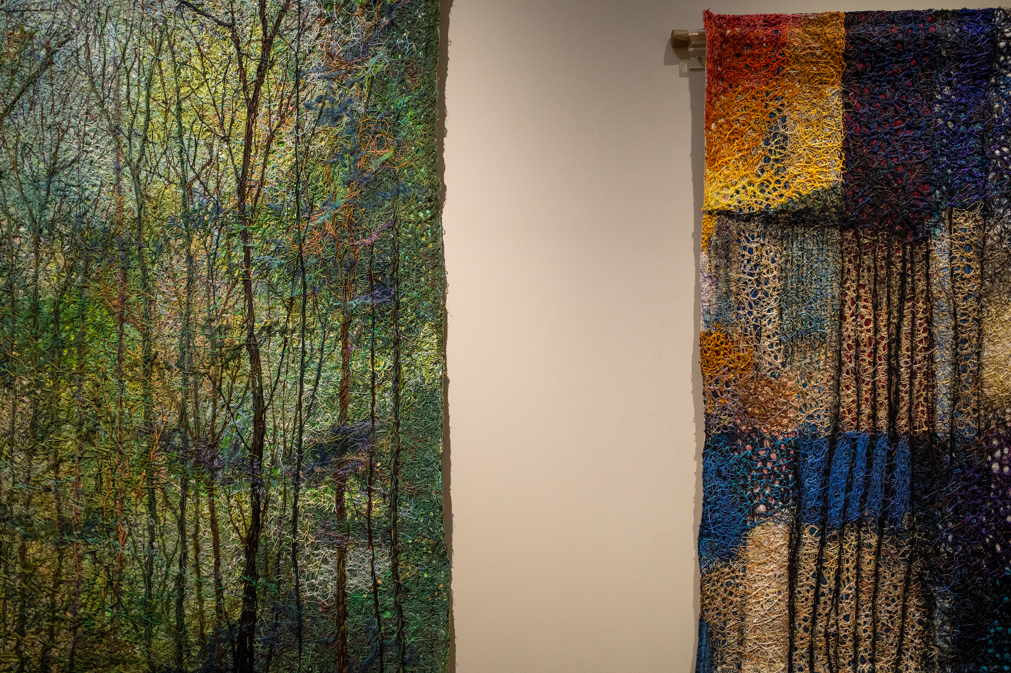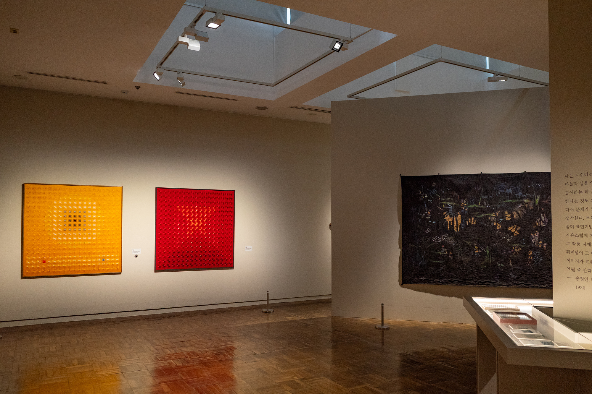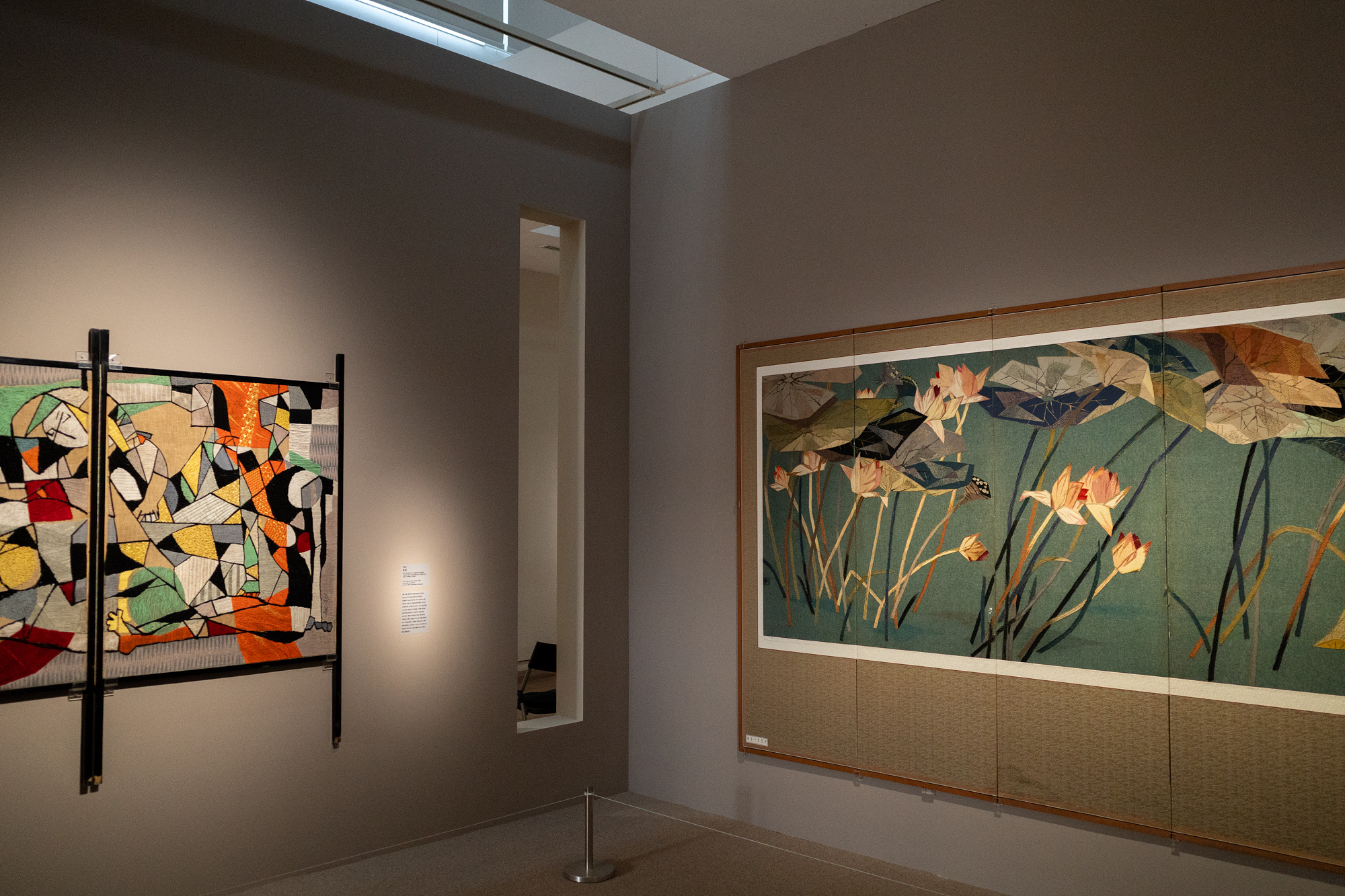 3 전시실에는 광복 후 국가 재건과 조국 근대화가 사회적으로 화두 됐던 시기에 자수가 어떤 형태로 변화했는지를 담았습니다. 이 시기 자수는 추상화와 전통의 부활이란 형태로 전개되는데 전자는 아카데미 안에서, 후자는 그 밖에서 이루어졌다고 해요. 3번째 파트에선 아카데미 안팎에서 탄생된 자수를 살피고, 대상에서 완전히 벗어난 추상으로 나아간 1960년대 작품까지 다룹니다.