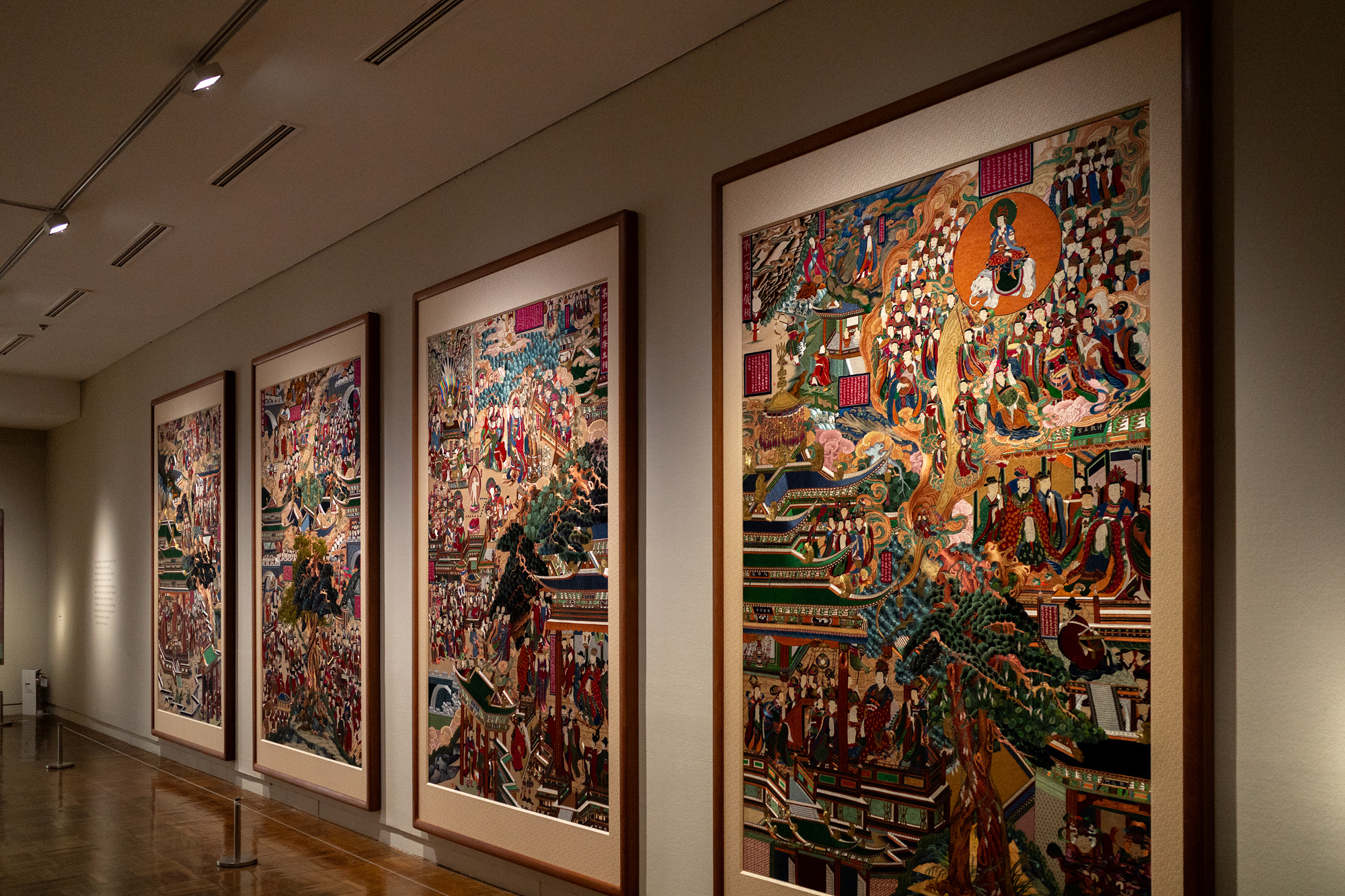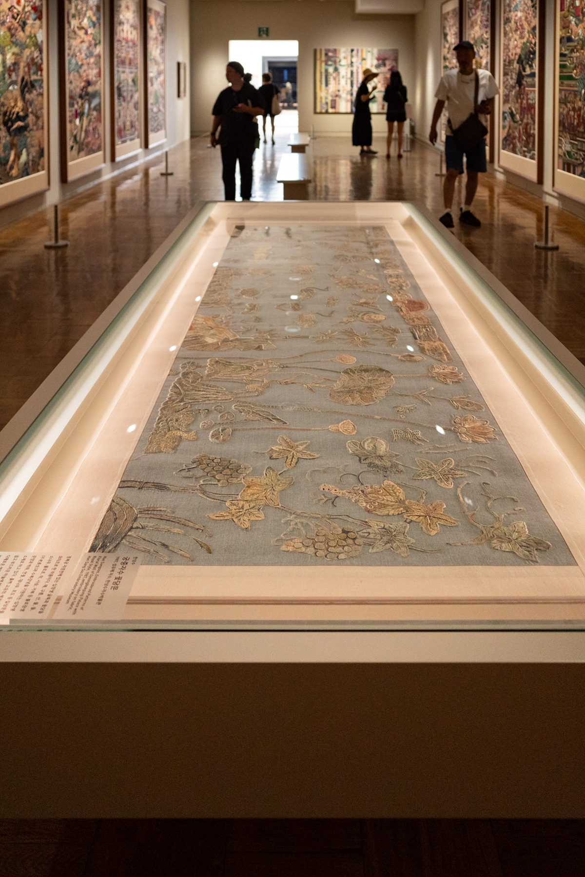 자수 작품은 온·습도와 조도에 민감하기 때문에 전시실 내부가 꽤 어두워요. 관람하실 때 넘어지거나 벽에 부딪히지 않게 조심하시고 2, 3층에 걸쳐 4개의 전시실을 오가기 때문에 중간중간 쉬면서 방금 봤던 작품을 곱씹어 봐도 좋을 거예요.