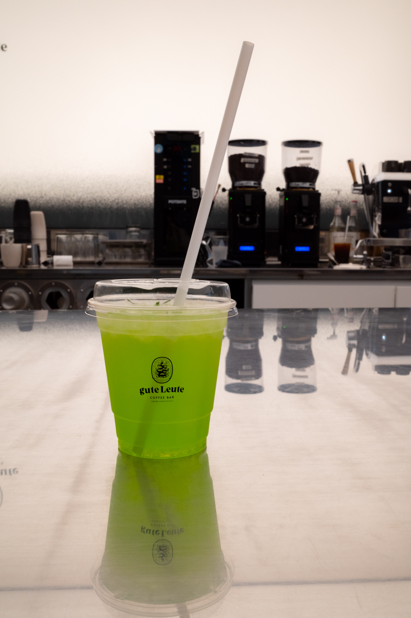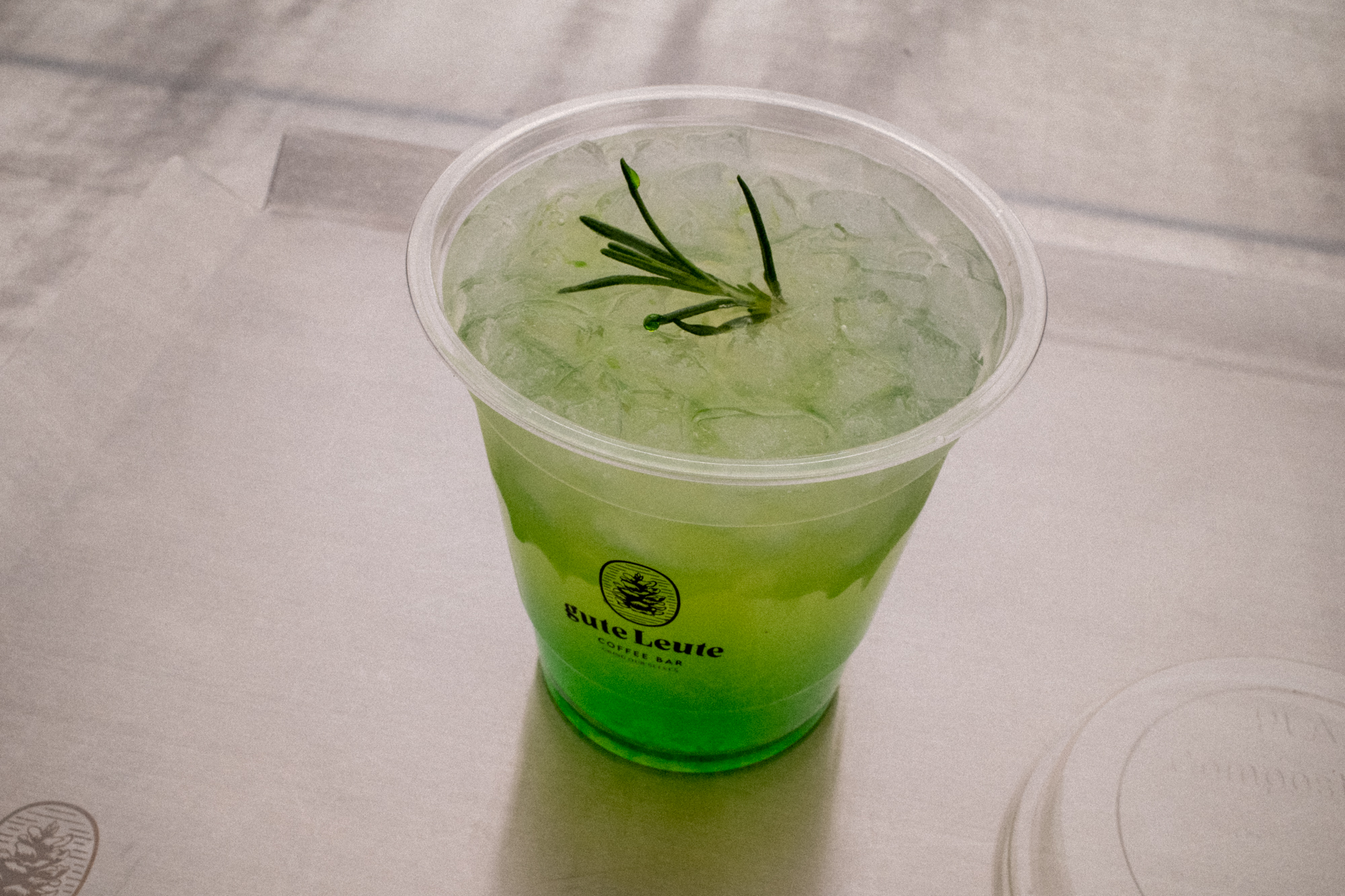 마지막 메뉴는 테이크아웃으로 제공되며 논커피입니다. 레몬 허브티에 키위 시럽을 넣은 냉차가 서빙돼요. 레몬 허브티는 키위 시럽이 들어갔음에도 달지 않아서 입안을 깔끔하게 마무리할 수 있습니다. 키위 시럽은 맛보다는 색을 내는 데에 더 주력한 듯 으레 생각하는 과일 키위의 맛은 거의 전무합니다.