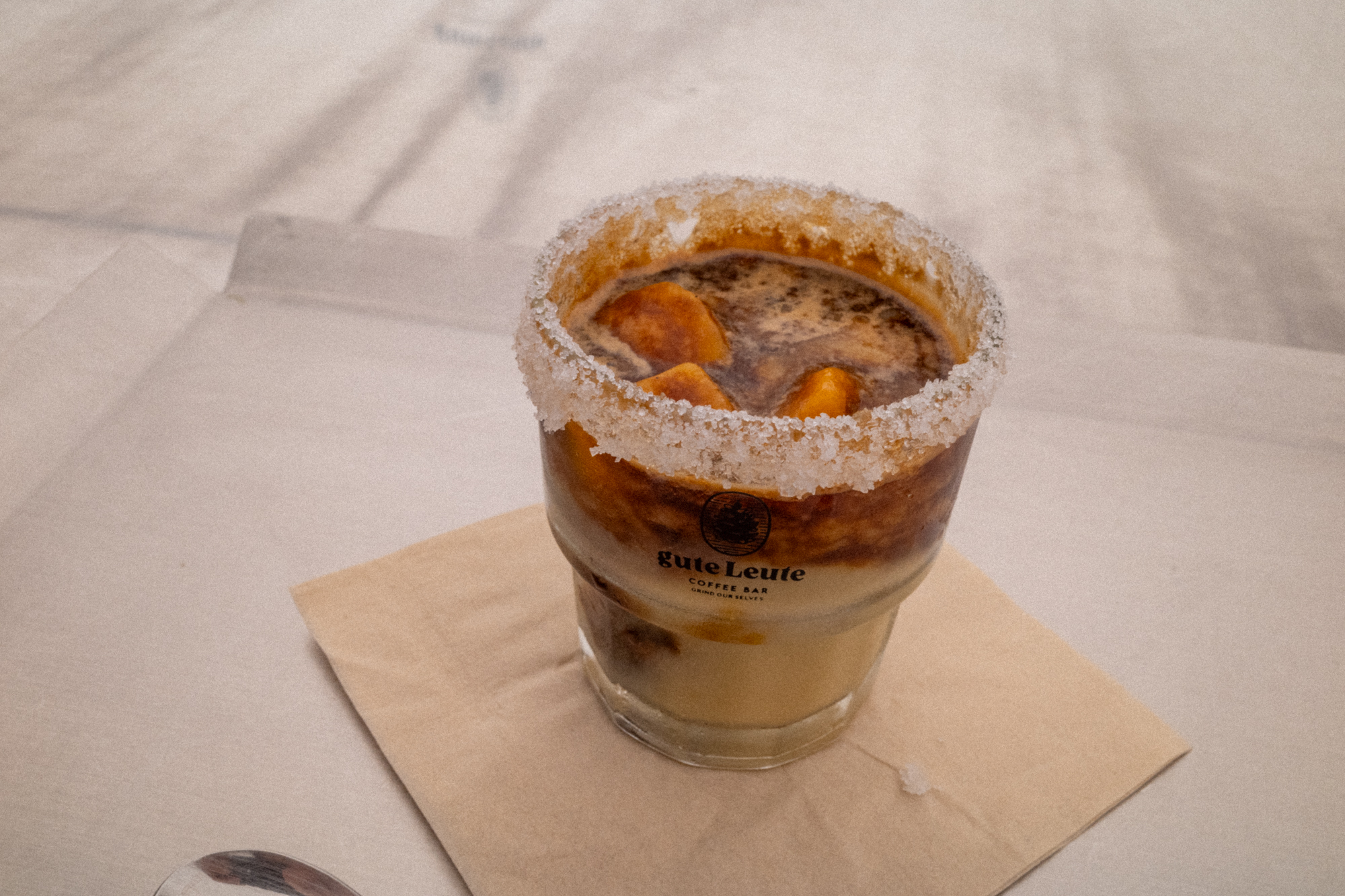 컵 표면에 설탕이 리밍 되어 있어 잔을 돌려가며 마시면 되는데 설탕은 달지 않고 오히려 씹히는 식감을 더해 재미있었어요. 코코넛과 에스프레소에 빠진 망고는 상큼함을 유지한 채 제맛을 냅니다. 전체적으로 신선하면서도 맛있는 메뉴였어요. 제 원픽이었습니다.