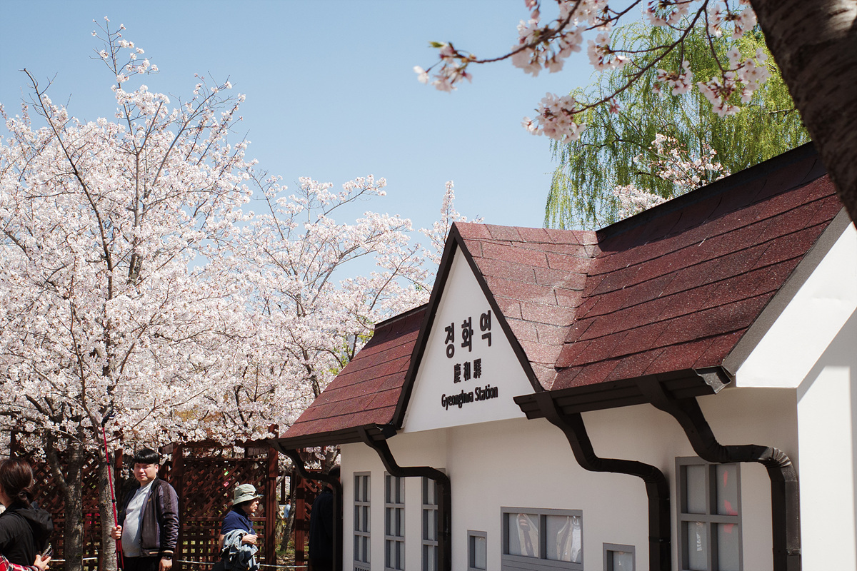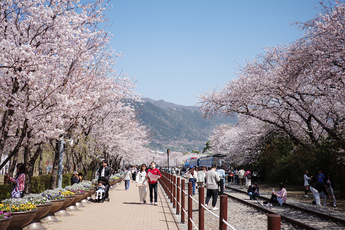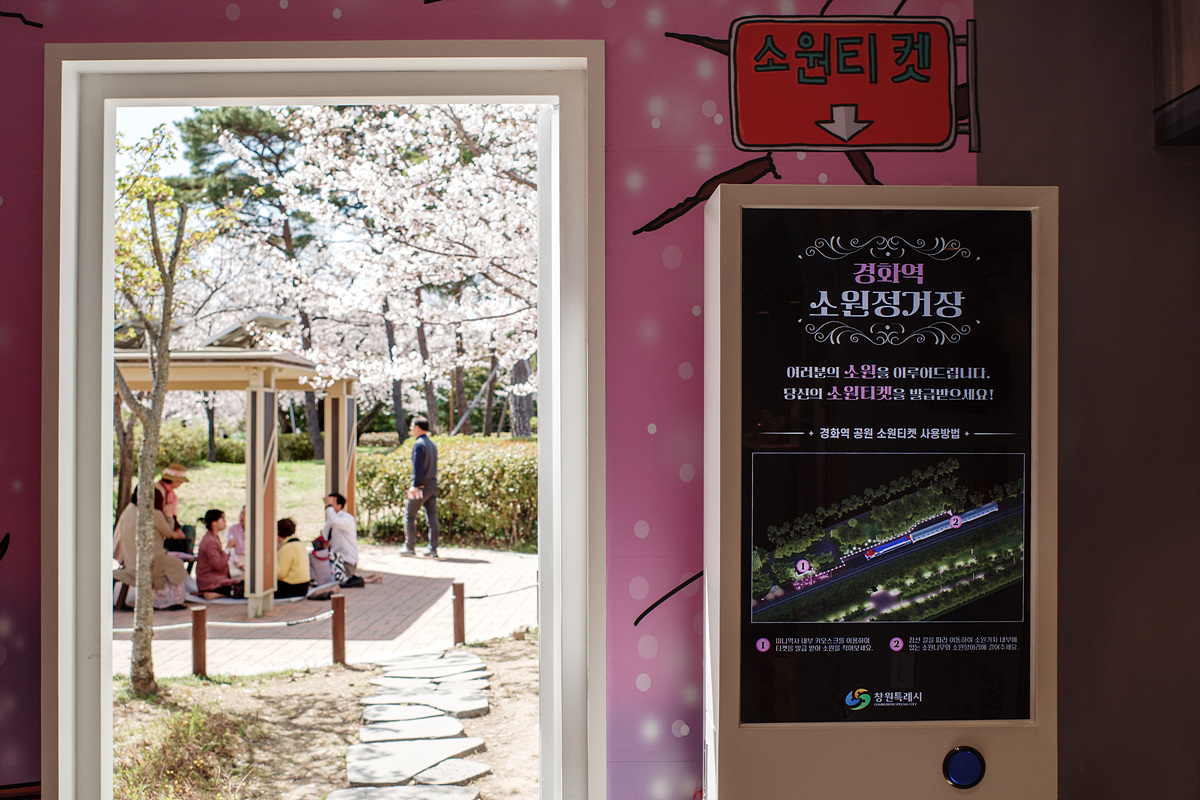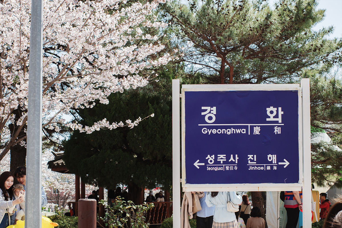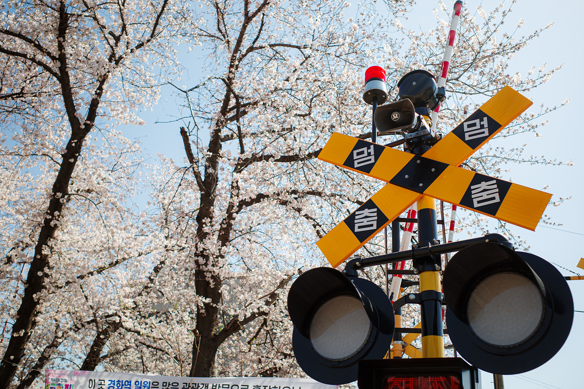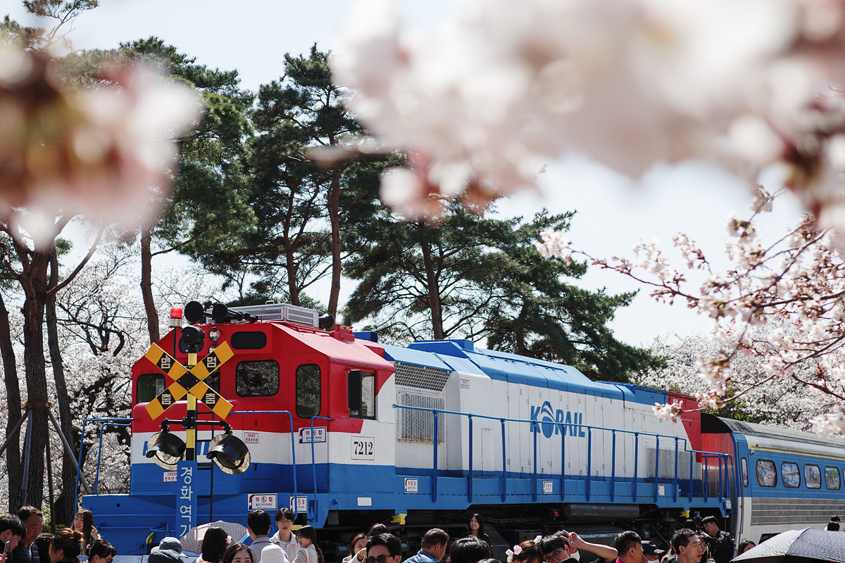 원래 마산과 진해를 연결하는 간이역이었던 경화역은 이제 일상과 벚꽃 세상을 연결하는 기차역이 되었습니다. 흐드러지게 피어난 벚꽃을 가르며 달려와 새로운 세상으로 데려가는 이 기차역과 사랑에 빠지지 않는 법, 저는 모르겠어요. 긴 벚나무길을 배경으로 기차와 사진을 찍으려는 사람 줄이 아주 길었습니다. 벚꽃이 뭐라고 이 많은 사람들의 입가에 미소가 떠나지 않을까요? 하지만 그들을 지켜보는 저도 내내 입꼬리가 한껏 올라가있더라고요. 꽃놀이란 그런 것인가 봐요.
