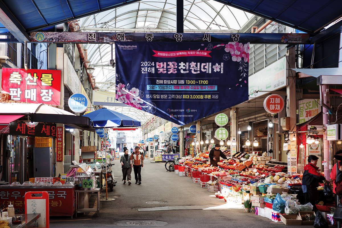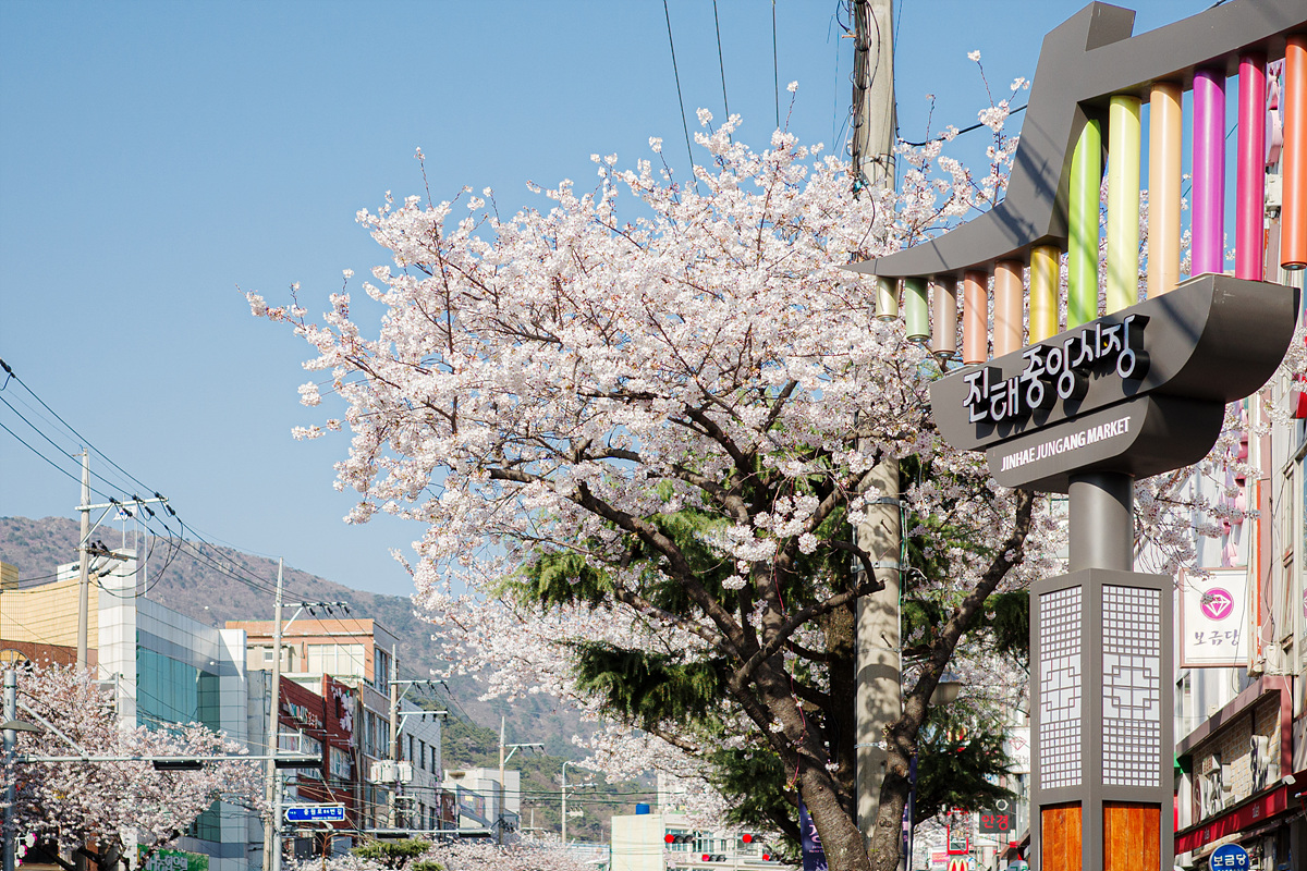 저는 조금 돌아서 갔지만 지도상으로는 여좌천에서 15분 정도 걸어가면 중앙시장이 나옵니다. 사실 진해 벚꽃을 즐기러 방문한 분들은 저처럼 여기저기 벚꽃이 길을 터주는 대로 구경하며 가지 않을까 싶긴 하네요.
