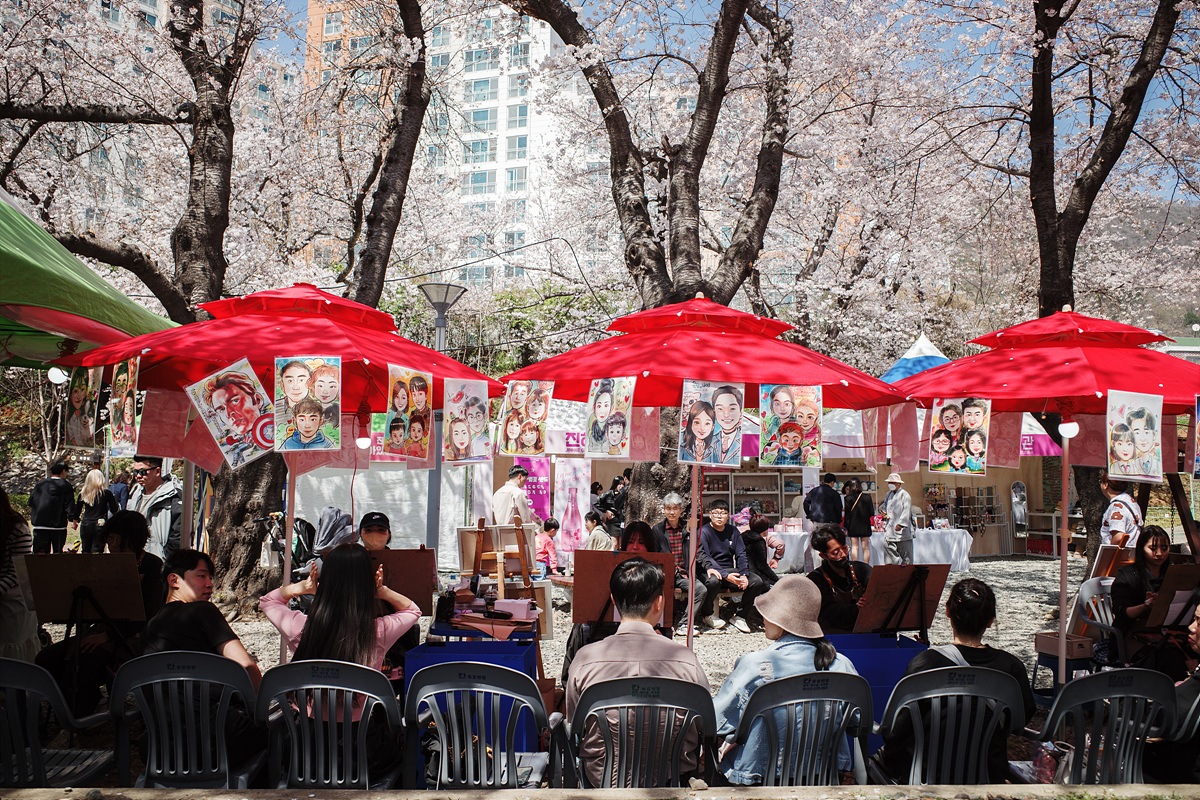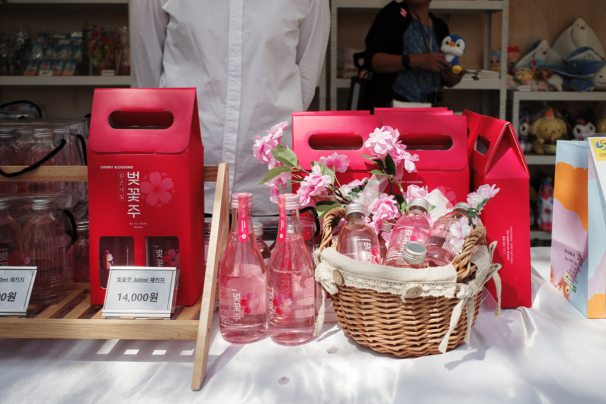 벚꽃으로 가득 찬 경화역은 볼거리 뿐 아니라 놀거리, 먹거리도 가득했습니다. 역시 식후경의 나라답게(?) 꽃놀이도 먹거리 없이는 영 아쉽죠. 벚꽃 길을 걷다 배고플 때 쯤 딱 등장하는 여러 간식을 판매하는 푸드트럭, 오늘을 남길 캐리커쳐나 하루를 특별하게 기억할 버스킹 존도 있었고요, 벚꽃으로 만든 술과 빵도 판매하고 있었습니다. 역시 해마다 수백만이 방문하는 축제는 준비성이 뭐가 달라도 다릅니다.
