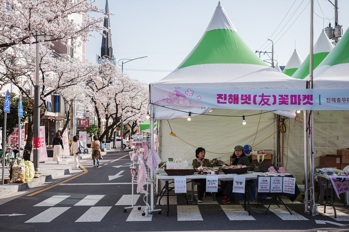 벚꽃장을 한 바퀴 돌고 중앙시장을 갔다가 돌아가는 길에 보니 벚꽃장도 사람이 조금 더 늘었더라고요. 군항제를 더 다양한 방식으로 즐길 수 있도록, 그리고 진해의 여러 상권이 축제에 함께할 수 있도록 고민한 지점들이 보여 축제가 한층 풍성하고 즐거웠습니다.