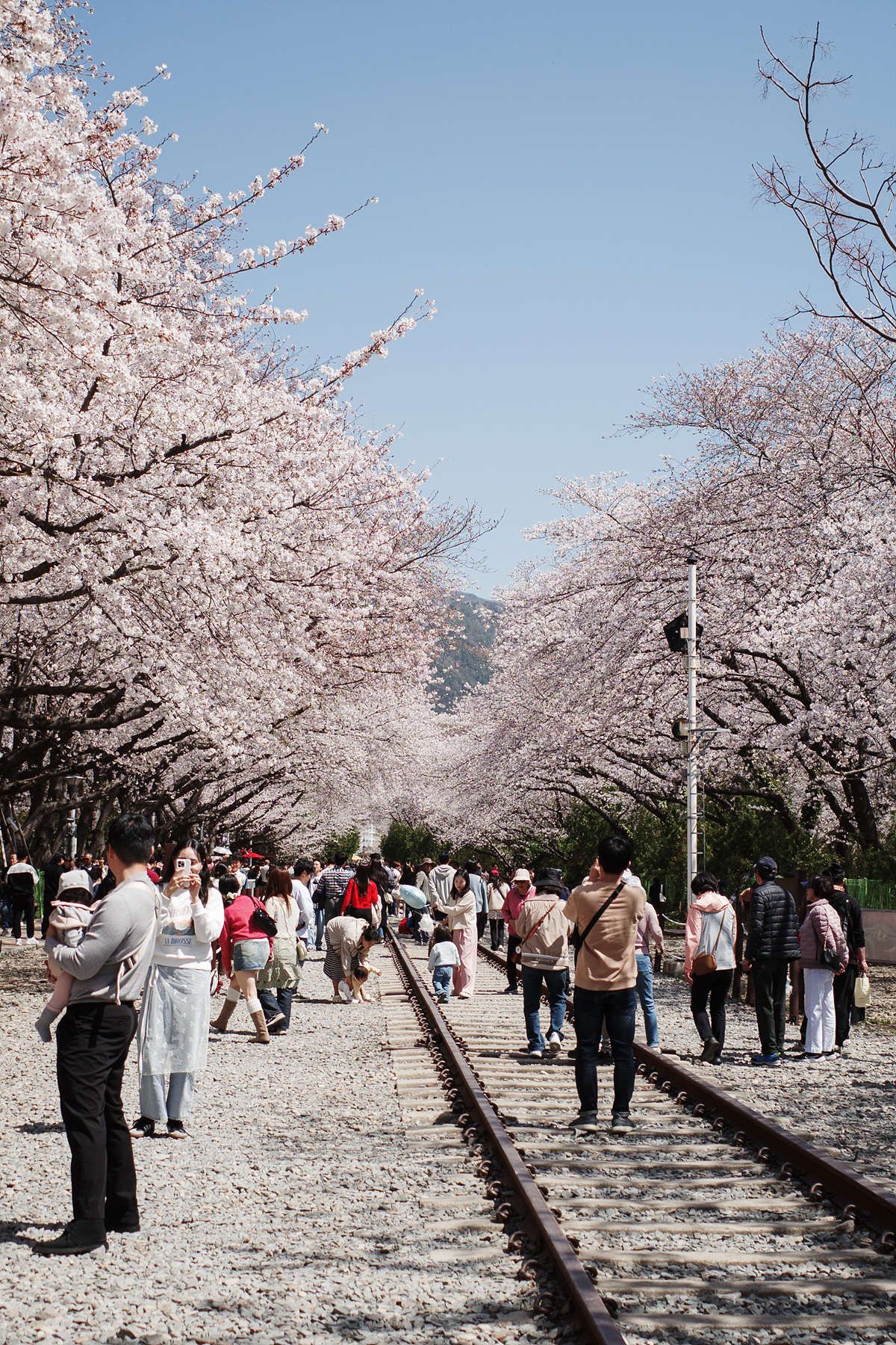 경화역 길을 오래 걸으면서 가장 재밌었던 것은 경계가 없다는 점이었습니다. 벚나무가 너무 촘촘하고 풍성하게 꽃을 피워서 나무 간 경계도 없고 포토존마다 너무 당연하게 "찍어드릴게요!"하고 서로 사진을 확인하는 상춘객들 간에도 경계가 없었습니다.