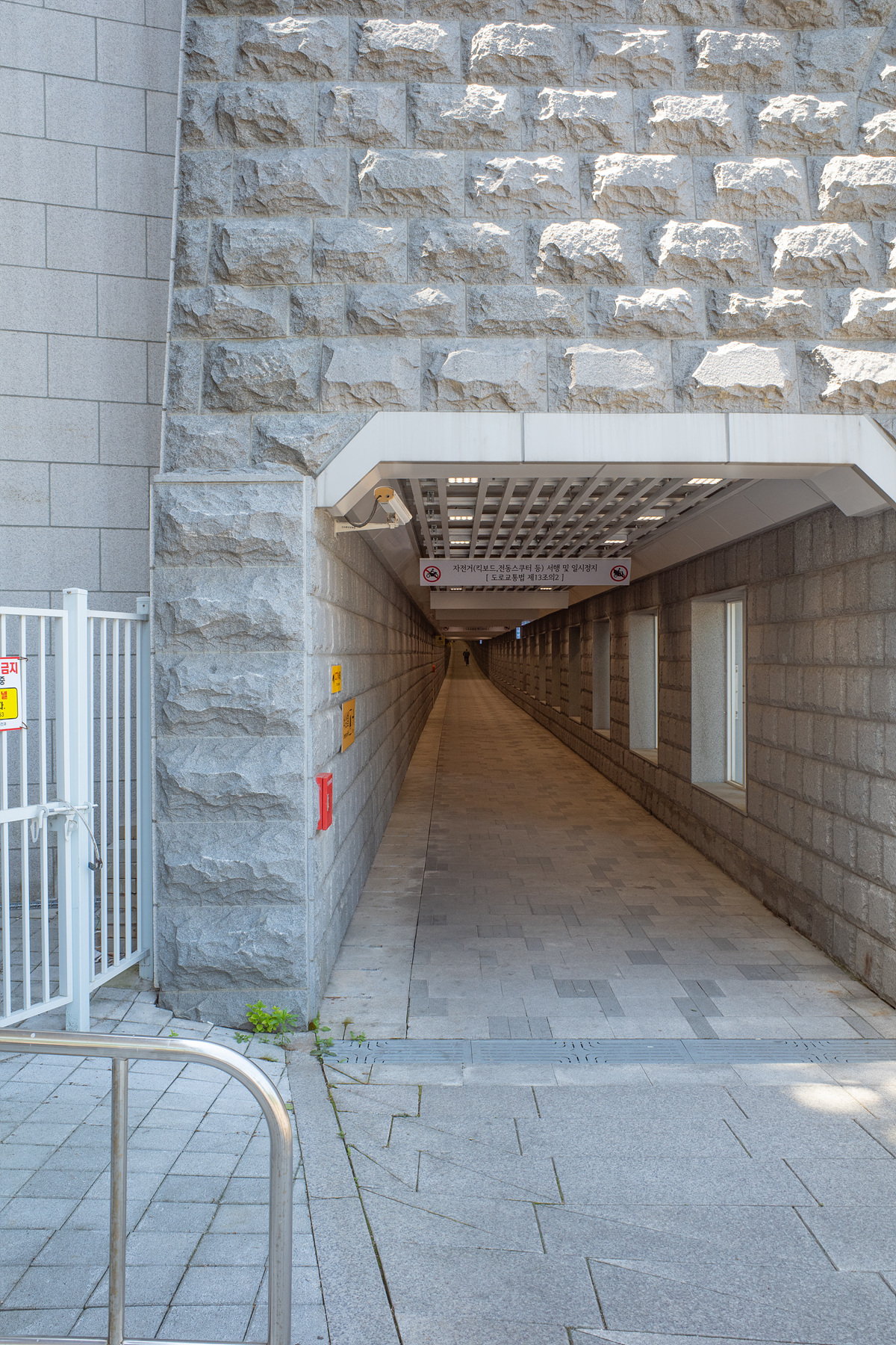 길 끝에 도착하면 아래로 내려갈 수 있는 계단과 엘리베이터가 있는데, 내려가면 율곡 터널 보행로로 이어집니다. 길 반대편에는 궁궐담장길로 올라가는 엘리베이터나 계단이 없어요. 원남동이나 혜화로 빠지지 않고 서순라길로 돌아가려거든 타고 내려왔던 엘리베이터로 다시 올라가면 됩니다. 저처럼 길이 있을 줄 알고 건너가지 않아도 돼요.