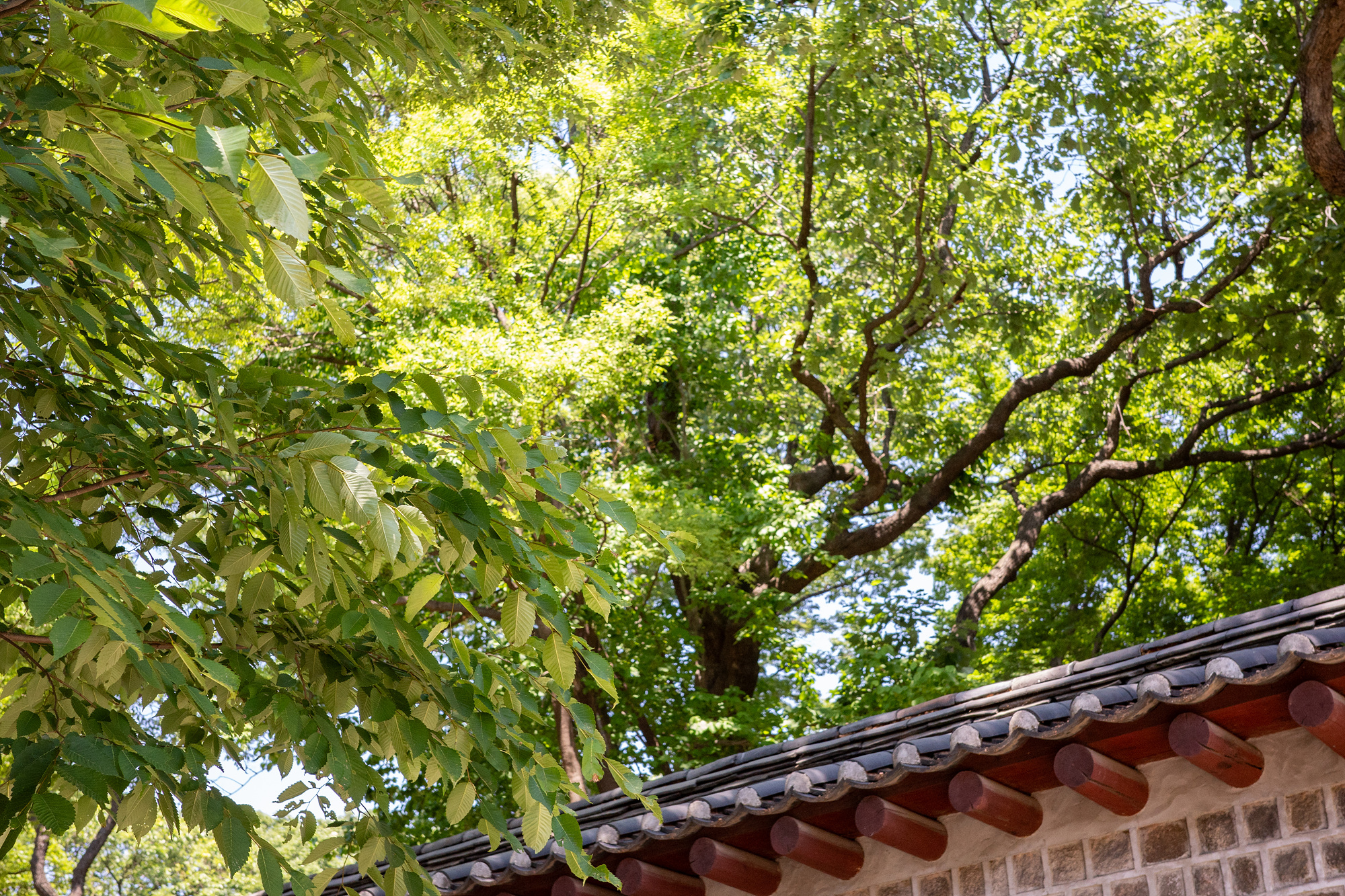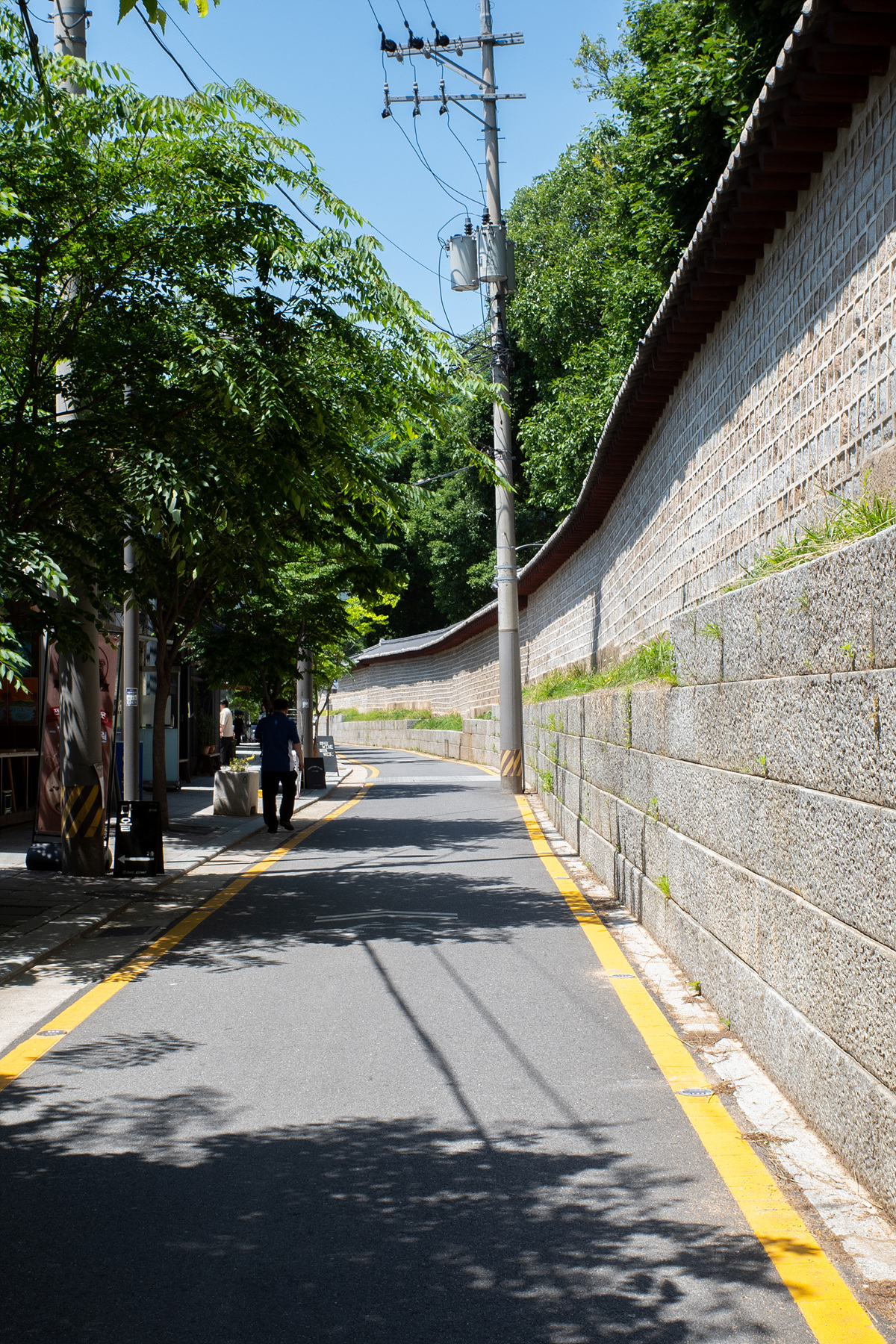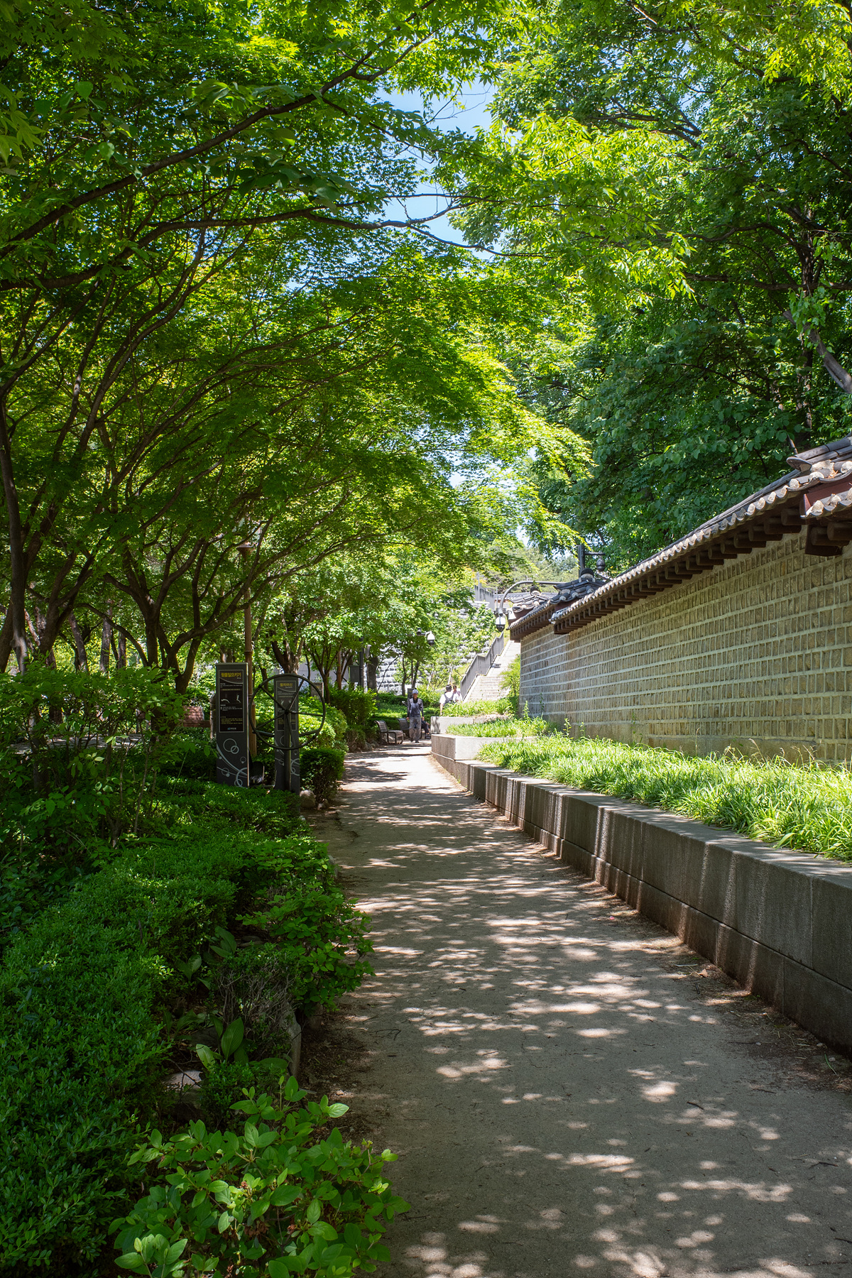 서순라길에서 궁궐담장길로 향하는 길목은 작은 공원처럼 되어 있는데, 우거진 나무들이 만든 그늘 덕분에 더위를 잠시 달래고 가기에 좋았어요. 서순라길에서 궁궐담장길 초입까지 거리는 길지 않습니다. 저는 상점을 구경하고 고양이와 잠시 노느라 시간이 더뎌졌는데 걷기만 한다면 20분 전후로 소요되는 듯했어요.