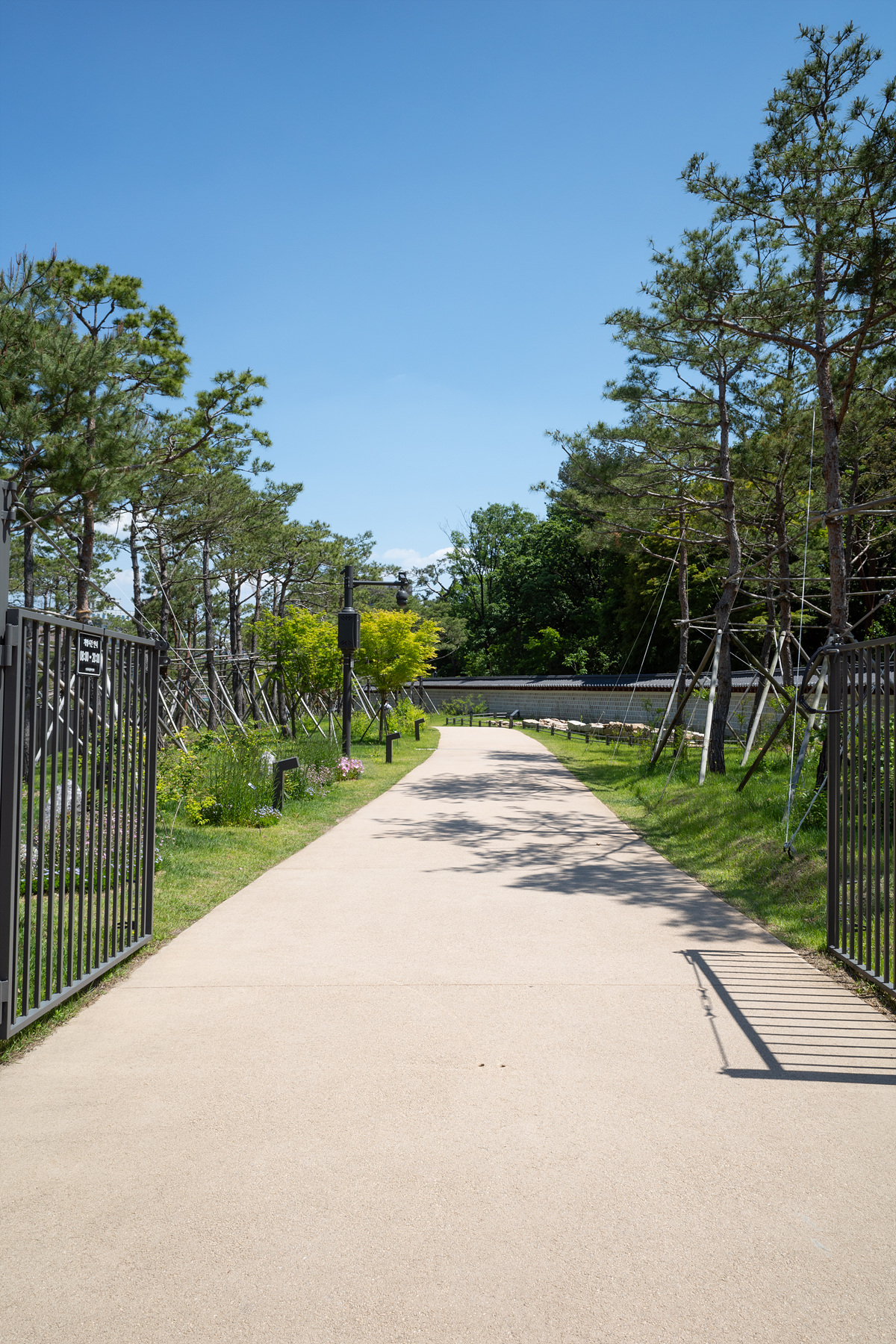 궁궐담장길은 경사가 급하지 않은 오르막과 내리막이 있고, 그늘이 일절 없어 양산이나 모자가 필수입니다. 짧은 거리지만 길 옆에 갖가지 나무와 식물로 조경을 조성했고, 어떤 꽃이고 어떤 나무인지도 잘 설명되어 있습니다. 그냥 걷기만 하는 것이 아니라 작은 정원을 하나하나 감상할 수 있게 되어 있어요. 무엇보다 조용합니다. 발아래로는 차가 달리고 사위가 탁 트여 있는데도 생각보다 시끄럽지 않은 점도 이곳의 장점이었어요.