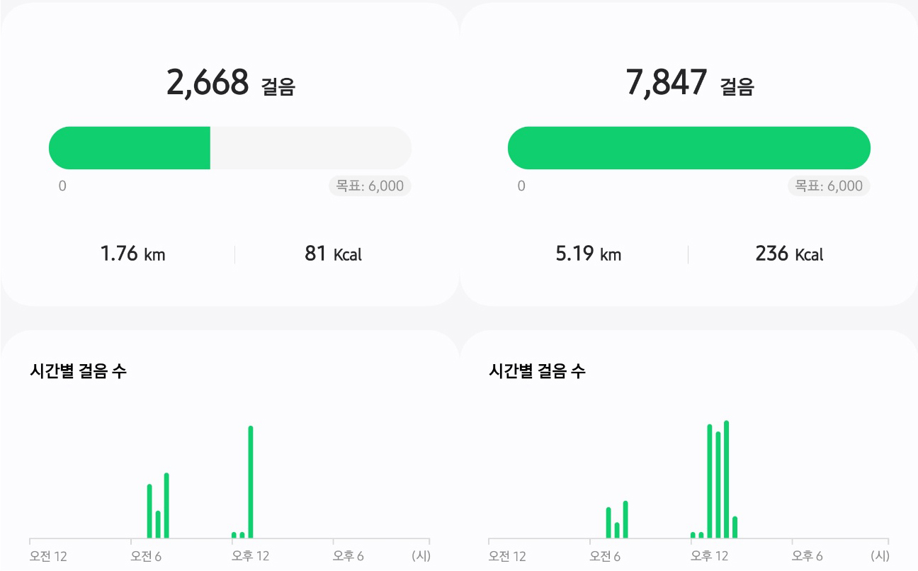 (왼) 산책 전 / (오) 산책 후