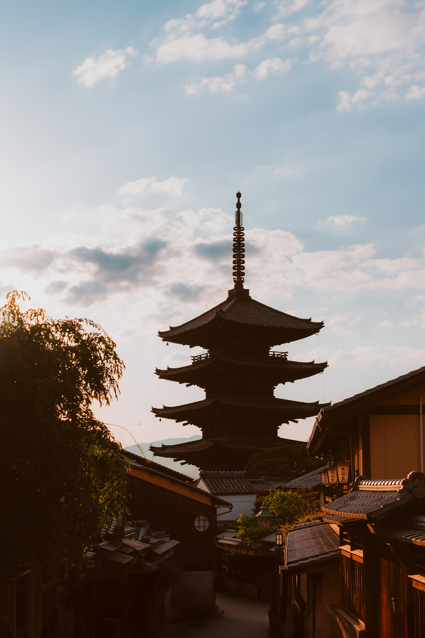 교토의 상징적인 풍경 중 하나로 전통 의상을 입고 이 탑을 배경으로 사진 찍는 사람들이 매우 많습니다.