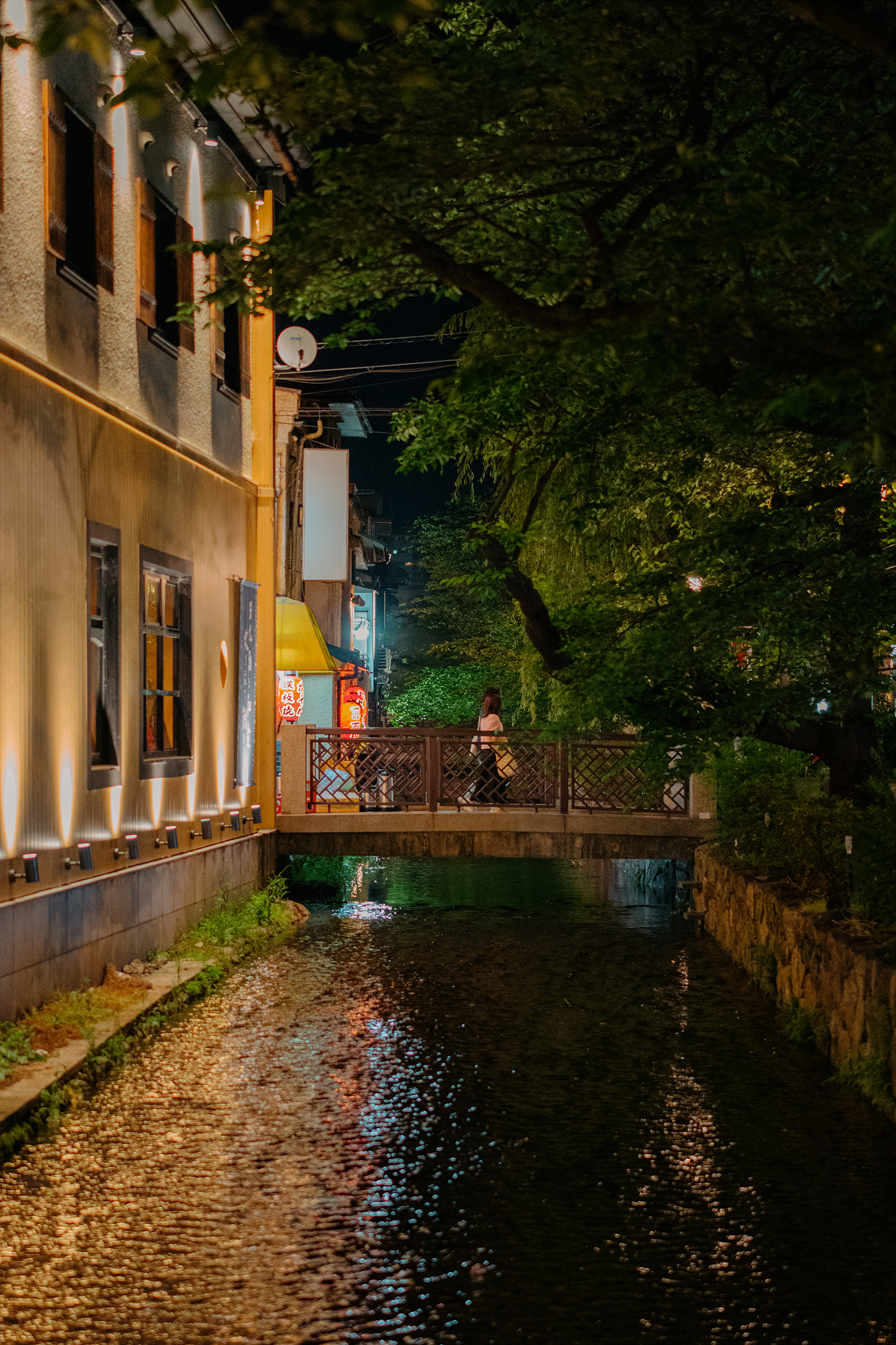 한낮 풍경만큼 매력적인 것이 교토의 밤 풍경입니다. 교토의 유명한 전통 거리인 하나미코지도리, 작은 운하 옆으로 여러 식당과 술집이 이어져 있는 폰토초, 그리고 강물 위로 주변 건물의 불빛이 반사되어 로맨틱한 분위기를 자아내는 가모 강변은 오히려 낮보다 밤에 더 아름다움을 드러내는 곳입니다.