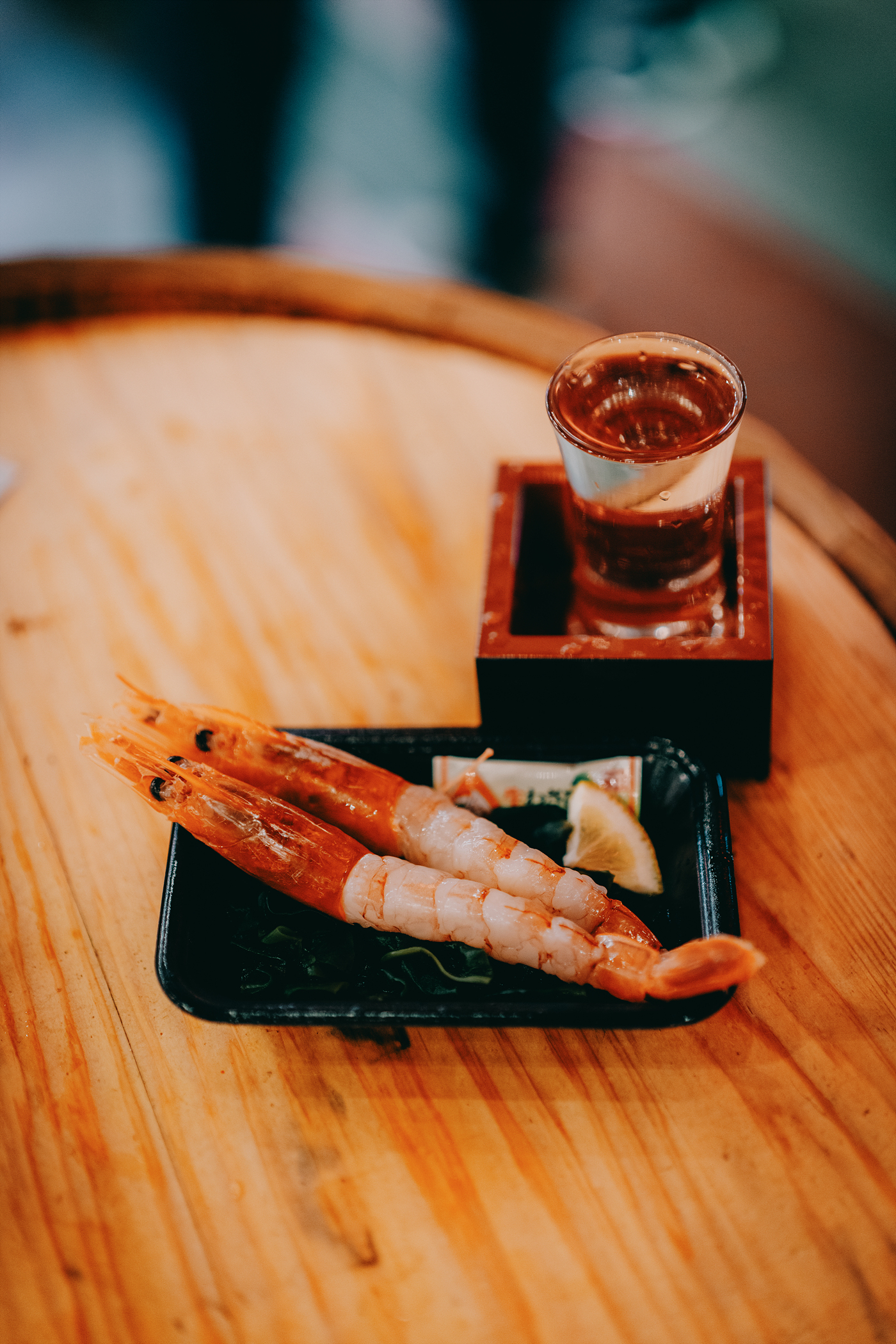 또한 이렇게 현장에서 사케 등의 술을 잔 단위로 팔고 있어 현장에 비치된 테이블 위에 올려놓고 간단한 식사와 술을 즐기는 재미도 좋습니다.