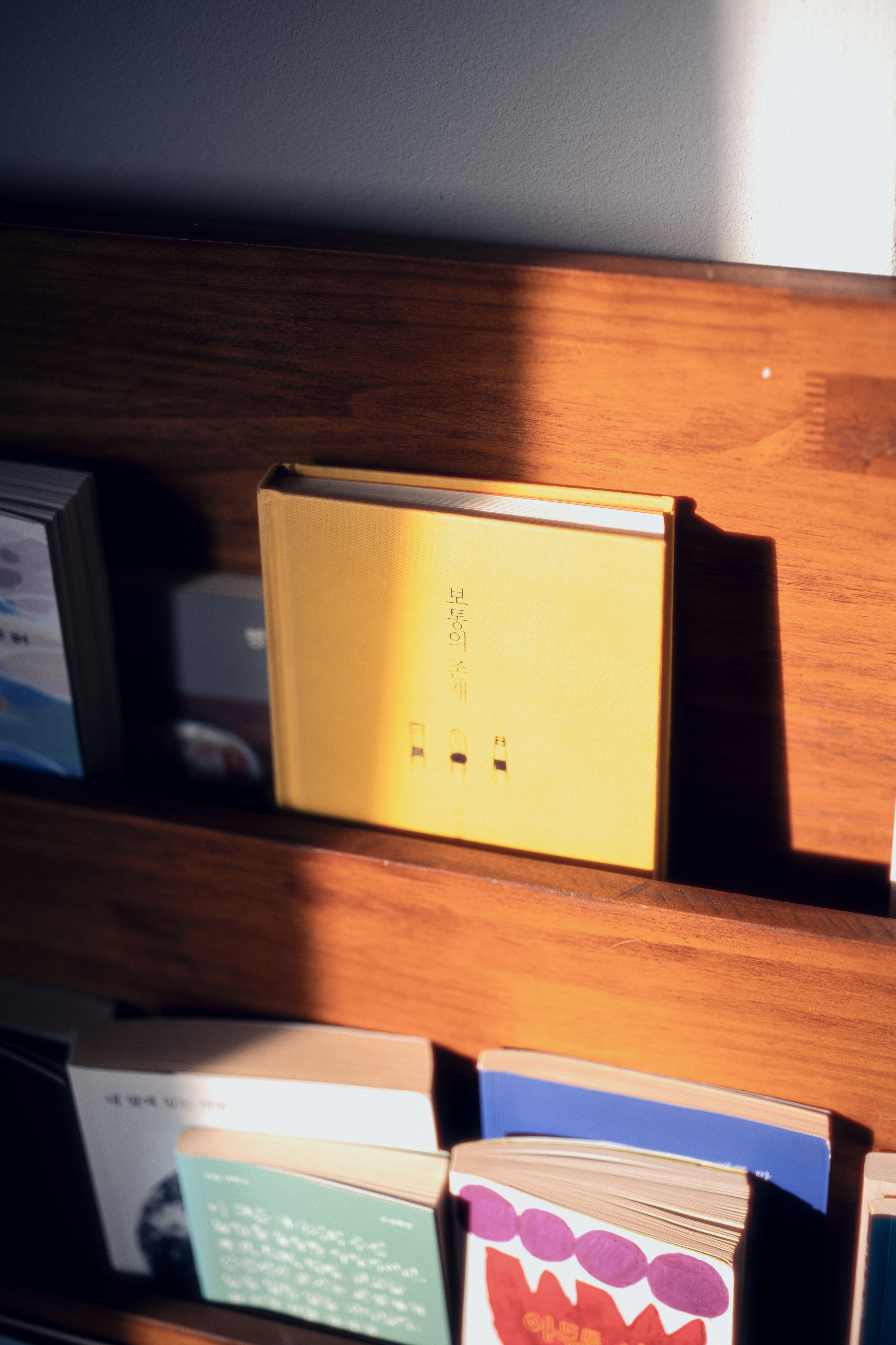 커피를 입안에 머금고는 입구의 책꽂이에 가봅니다. 마침 절묘하게 빛과 그림자의 경계에 이석원 작가의 『보통의 존재』가 놓여있습니다. 그의 감성에 동화되어 센치해지기엔 창밖의 볕이 너무 좋은데, 어쩐지 또 그 감성이 지금 이 카페와 잘 어울리는 것 같아 가지고 자리로 돌아와 몇 장을 읽어봅니다.