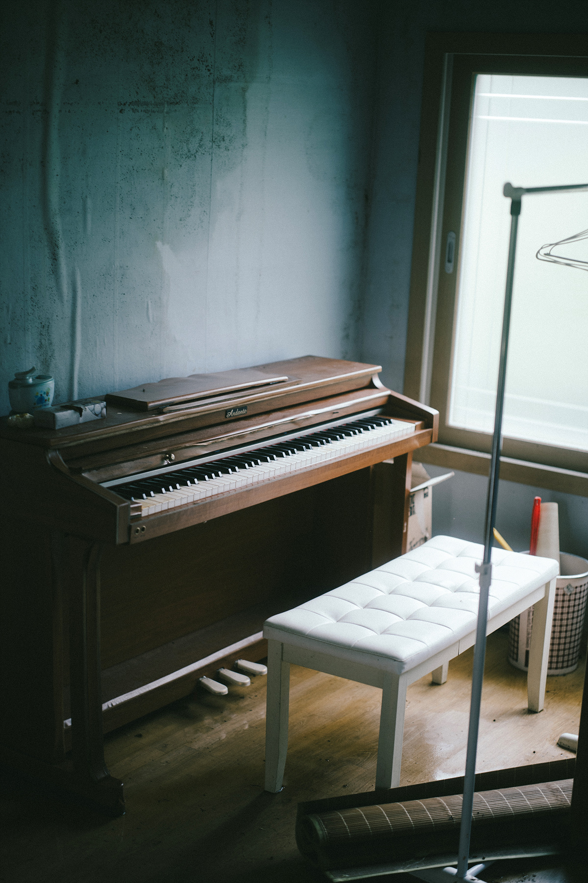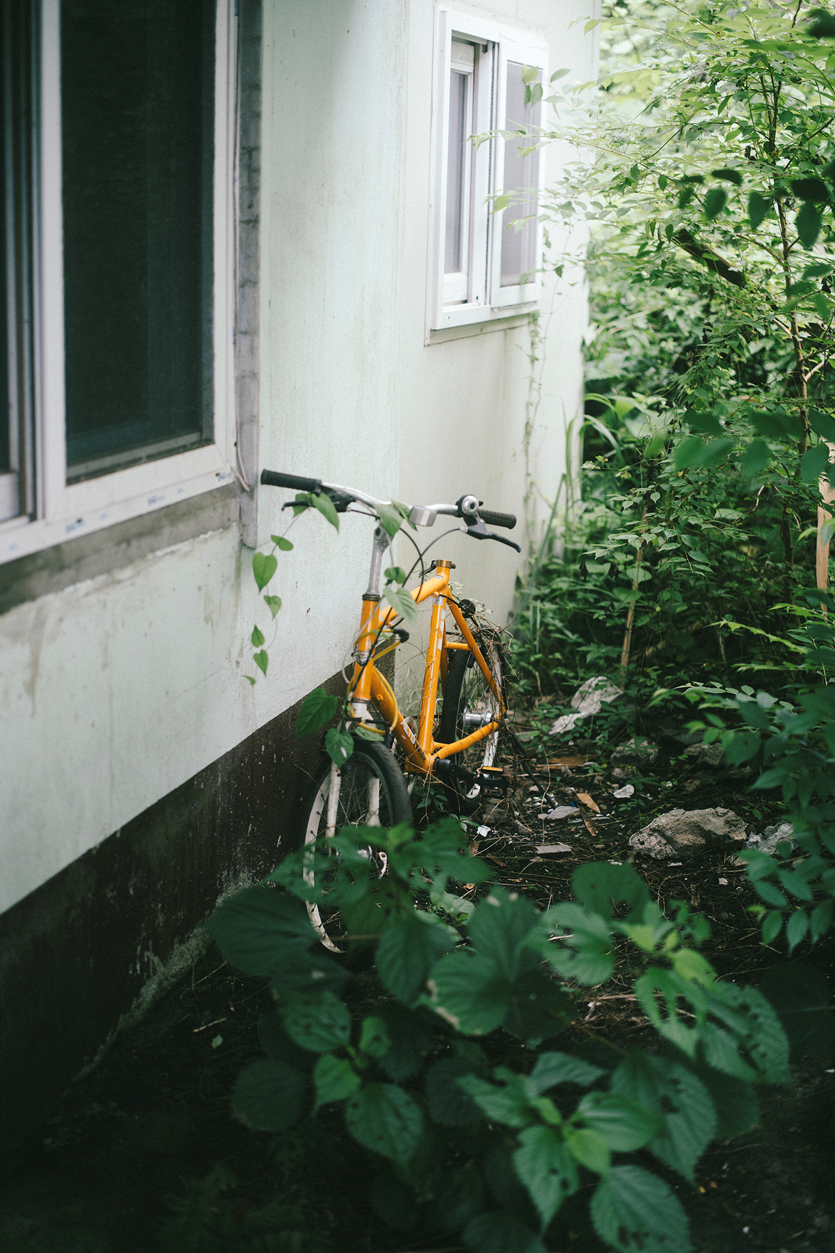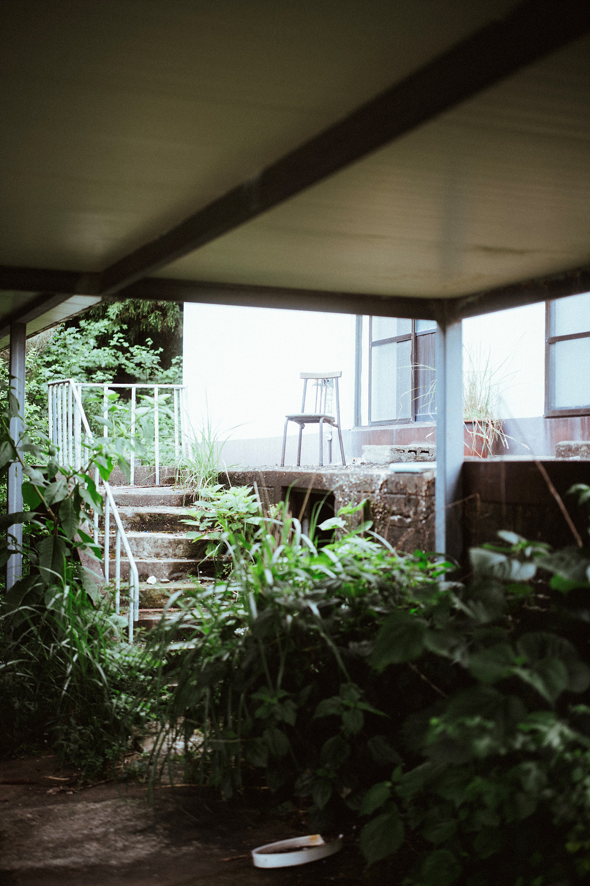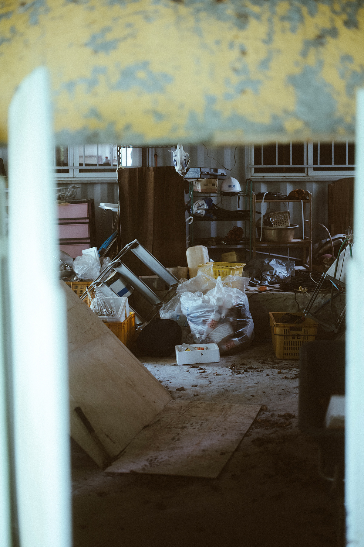 부서진 의자, 덩굴에 덮인 자전거, 낡은 개집 등이 바깥에 방치되어 있고 눈앞에 보이는 건축물부터 들어가 보니 내부는 대부분이 살던 모습 그대로 세간살이들이 남아있습니다. 폐허를 돌아다니다 보면 남겨진 그 흔적들을 통해 그 속에 살던 사람들을 상상해 보곤 합니다. 근데 이 폐허는 다른 곳보다 이상하리만큼 많은 것들이 제자리에 그대로 남아있음에도 그 속에서 살던 사람들의 형태가 그려지질 않습니다. 유행이 지난 굽이 높은 구두, 아이의 전자피아노, 방 한가운데 고이 걸린 예비군복, 고가구, 휠체어, 부엌의 식기들을 봐서도 가족인지 집단인지도 연령대와 몇 명이 거주하고 있었는지를 떠올려보는 것도 불가능합니다.
