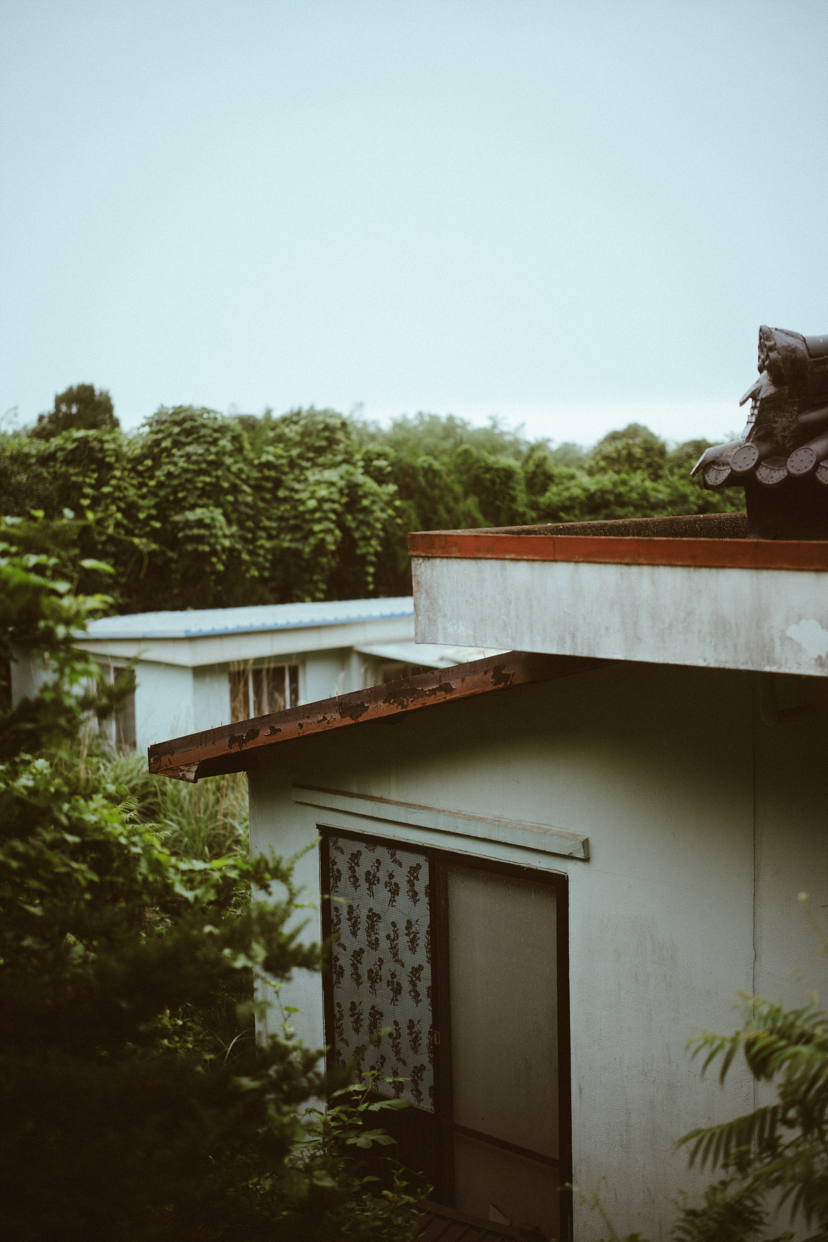 막상 앞을 가보니 딱히 접근하기 어려운 수준은 아니었는데, 멀리서 보던 것과는 달리 한 채의 건축물로 이루어진 것이 아닌 여러 채의 건축물들이 집합해 폐가가 아닌 꽤 큰 규모의 폐허와 같은 형태를 띠고 있습니다. 예닐곱 개는 되는 건축물들은 하나씩 시간을 두고 필요에 의해 증축을 한 것인지 크기와 모양이 전혀 통일성을 갖추지 못하고 미로처럼 얽혀 있는데, 각 건축물과 건축물 사이는 비를 맞지 않고 이동할 수 있도록 지붕이 덮인 통로로 연결되어 있습니다. 슬레이트 지붕과 각진 회백색 벽으로 이루어져 미적 요소는 철저히 배제하고 실용성만을 고려한 것으로 보이는 건축물들의 모습은 삭막하게 느껴집니다.