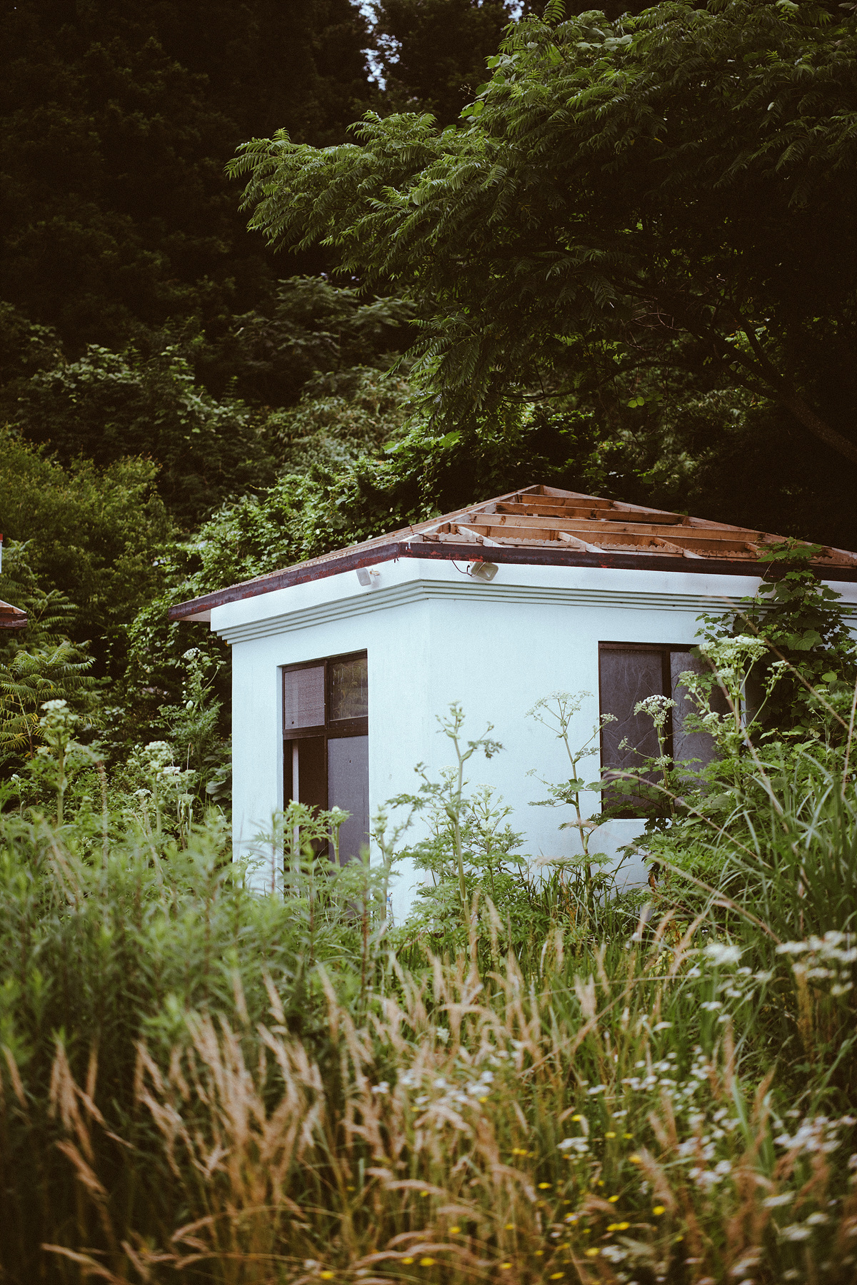 카메라에 장착해 둔 렌즈는 Zeiss Otus 55mm f/1.4입니다. 이 렌즈로 폐허 전체의 모습을 담을 수 있을 만큼 거리를 확보하는 것은 키보다 높게 자란 잡초들과 나무들만큼 불가능합니다. 글로 설명하기 힘든 이 폐허의 구조는 광각 렌즈를 하나 가지고 높은 곳에 올라 담는다면 해결이 될 것 같지만, 이 폐허의 구조보다는 면면에 담긴 분위기를 이미지로 새기기엔 지금의 렌즈가 오히려 적합합니다.