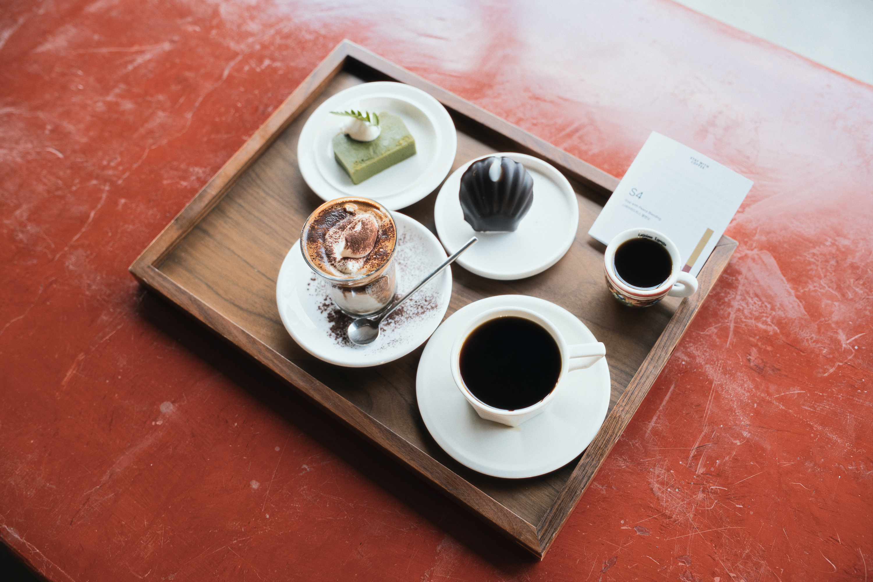 ‘파나마 에스메랄다 게이샤’와 같은 화려한 원두부터 다양한 싱글 오리진 원두들로 브루잉한 커피를 맛볼 수도 있었지만 스테이 위드 커피의 이름을 건 시그니처 블렌드와 메뉴판 옆에 사진까지 붙여둔, 에스프레소와 우유 위에 크림을 얹은 크림 라테가 궁금합니다.