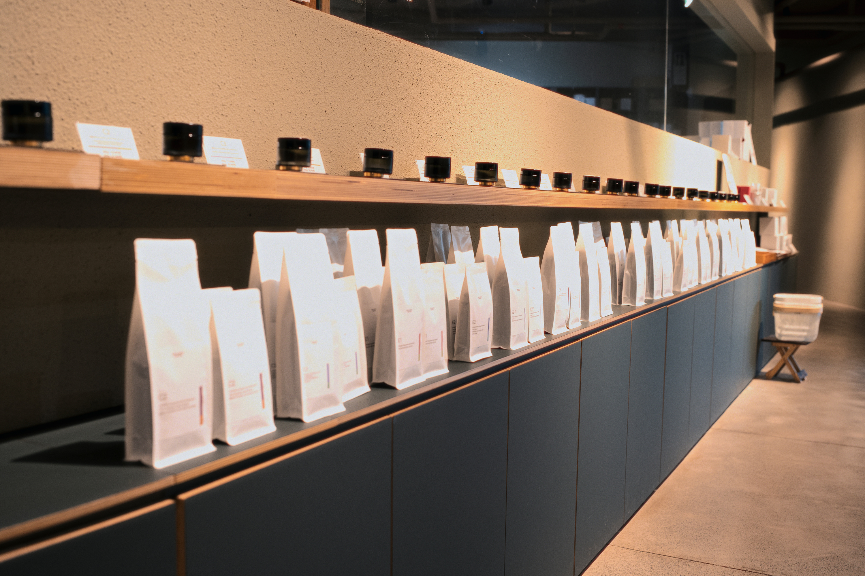 스테이 위드 커피가 대형 카페라도 12kg 로스터의 생산량을 모두 소비하기란 쉽지 않은데, 로스팅 룸 앞 진열대에 빼곡히 놓인 종류별 원두와 한정을 둬야 할 만큼의 인원이 구독 서비스를 이용하고 있다는 말을 듣고 나니 그 걱정이 기우였음을 알 수 있습니다. 샘플 로스터로 적은 양의 생두를 활용하여 원두의 성향을 파악한 후, 12kg 로스터로는 소비량이 많은 원두(아마도 여러 품종을 섞은 블렌드 원두), 5kg 로스터로는 여러 종류의 생두를 조금씩 로스팅 하는 등의(아마도 단일 품종의 싱글 오리진) 효율적인 방법으로 운영하고 있는 듯합니다.