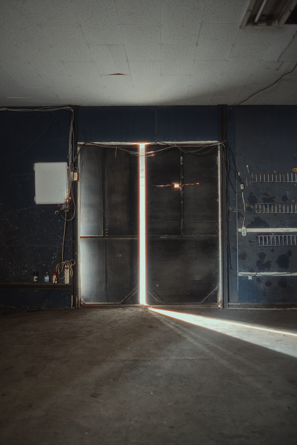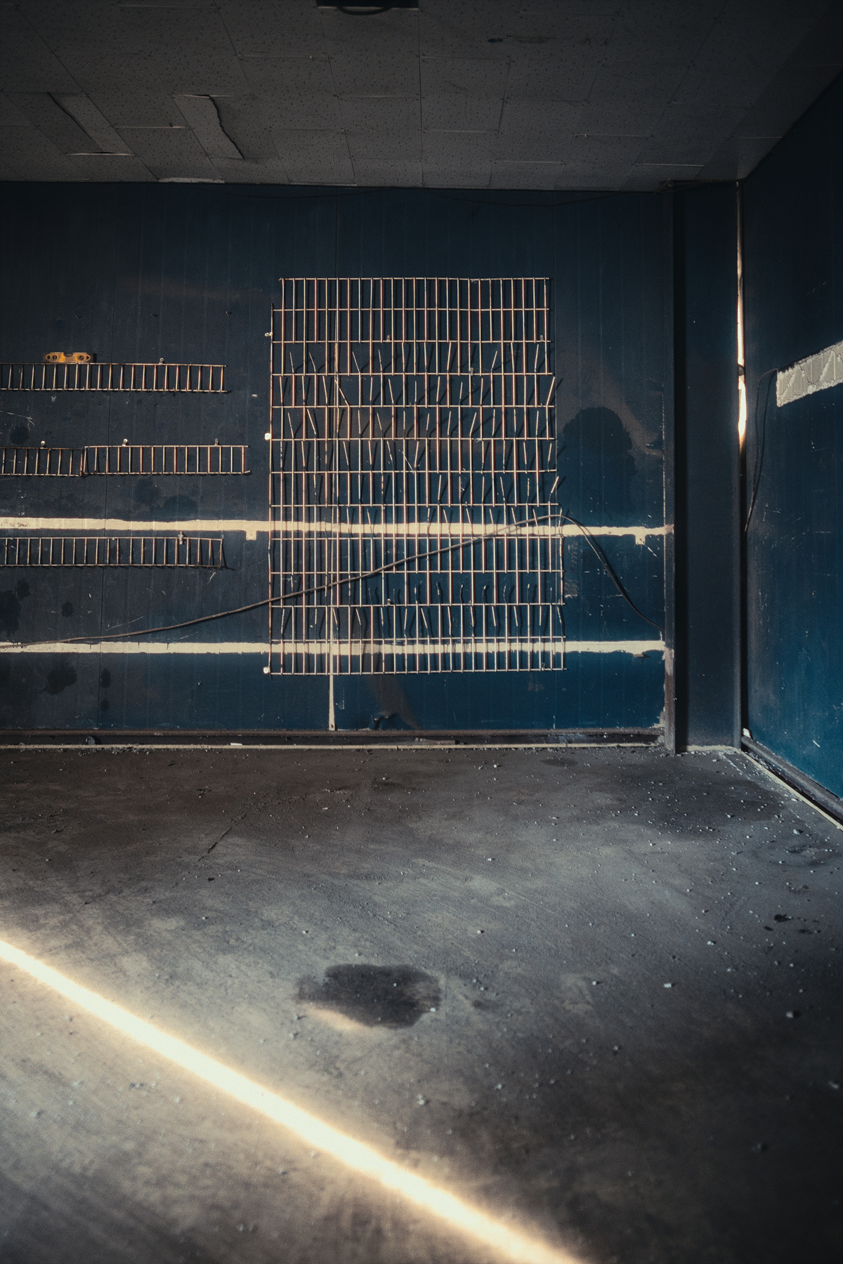 벽 한 켠에 걸려있는 출입카드 거치대는 이 공간에 수많은 사람들이 분주히 지나다녔던 사실을 알려주지만 지금은 그 흔적만이 남아 고요합니다. 복도의 끝 방만이 유일하게 문이 있어 조심히 문을 열고 그 안으로 들어가 보니 누가 봐도 이 공장 책임자였을 인물의 공간이 나옵니다. 안쪽으로 크게 난 창은 1층 공장을 한눈에 훤히 내려다볼 수 있는 구조인데, 덕분에 그의 레이더 안에선 그 누구도 딴짓을 하지 못했을 것만 같습니다. 불우한 주인공인 나오는 옛날 영화를 보면 꼭 이런 공간에서 악덕 고용주가 날카로운 눈을 하고 살펴보곤 하는 장면들이 있었다는 것이 떠오릅니다.