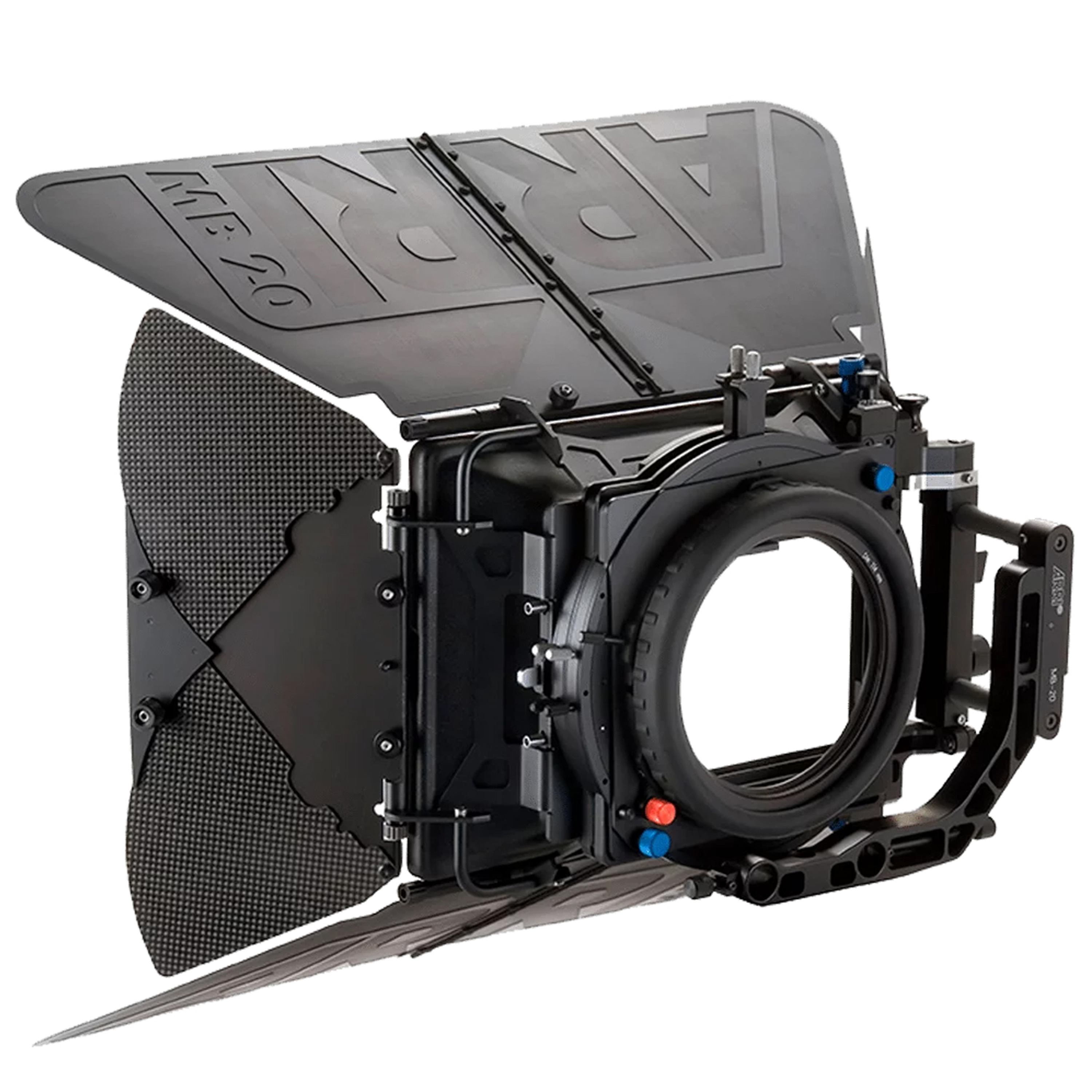 매트 박스는 렌즈로 직접 들어오는 빛을 차단하기 위한 용도로도 사용합니다. 때문에 각도를 조절이 가능한 ‘프렌치 플래그(french flag)’라는 차단막을 장착하고 있습니다. 프렌치 플래그는 일반적으로는 매트 박스의 상단에 장착하는 것이 일반적으로, 빛이 렌즈로 직접 들어오지 않게 하기 위해서입니다. 우리가 모자를 쓰는 것과 같죠. 또한 각도를 조절할 수 있기 때문에 렌즈의 화각에 영향을 미치지 않게 조절이 가능합니다.
