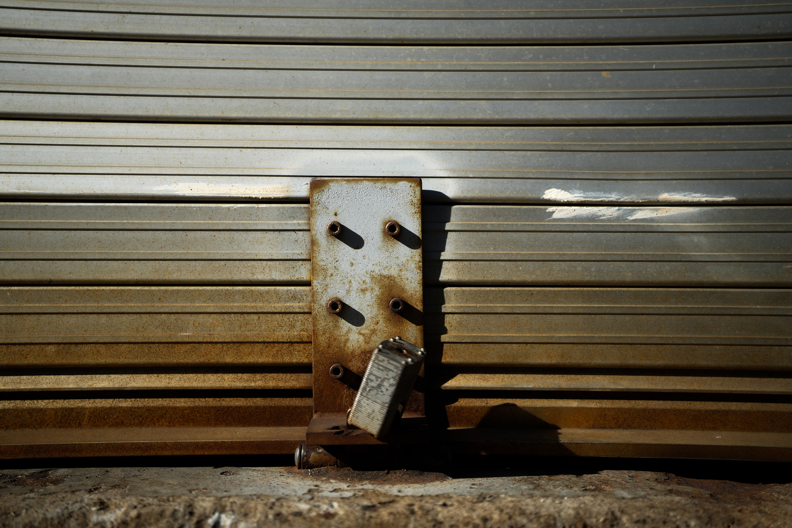 누군가가 주문했을 철문. 틈새로 들어오는 빛이 묵직한 깊이감을 만들어 냅니다.