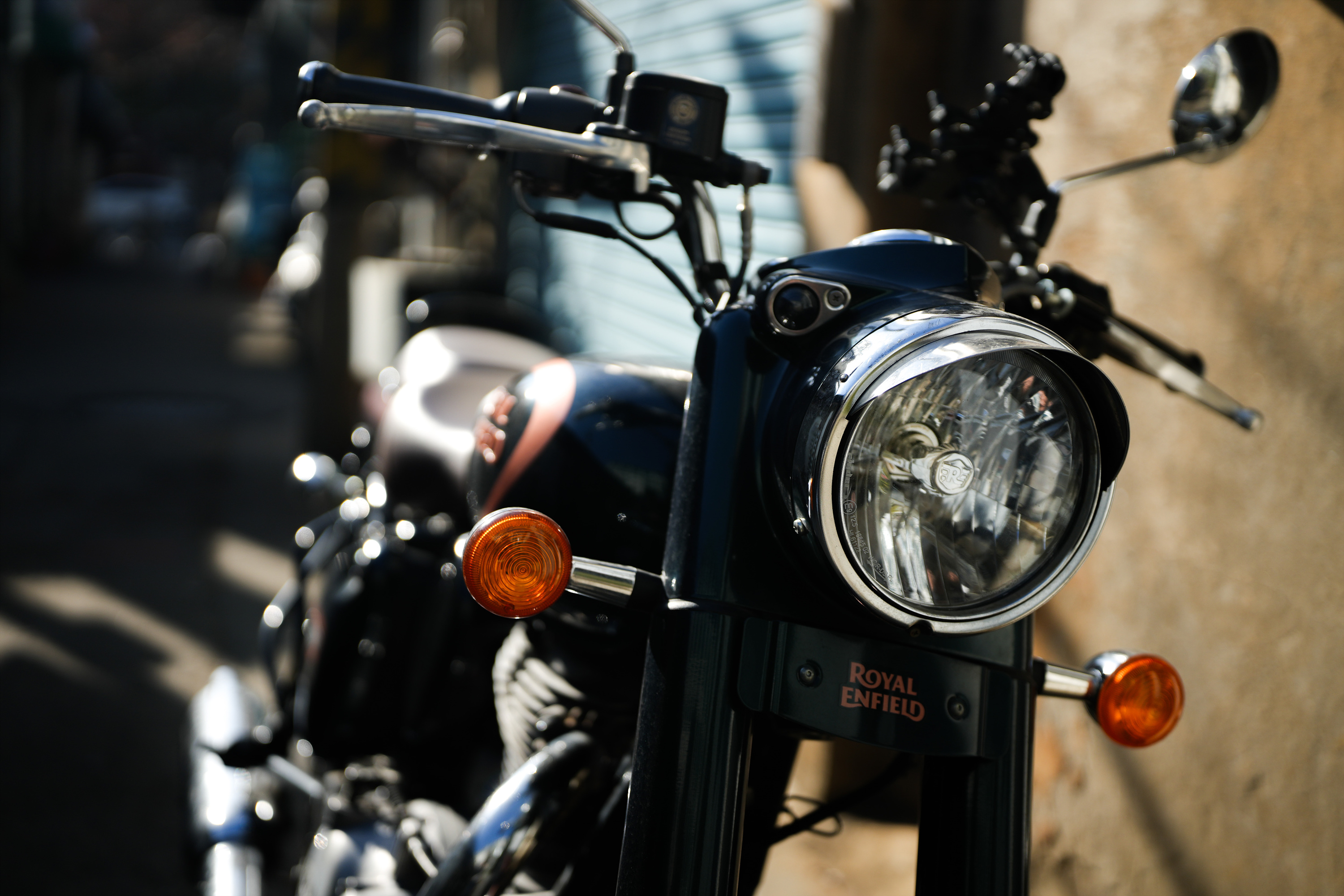크롬으로 두른 모터사이클. 금속 표면인데도 색수차가 보이지 않습니다.