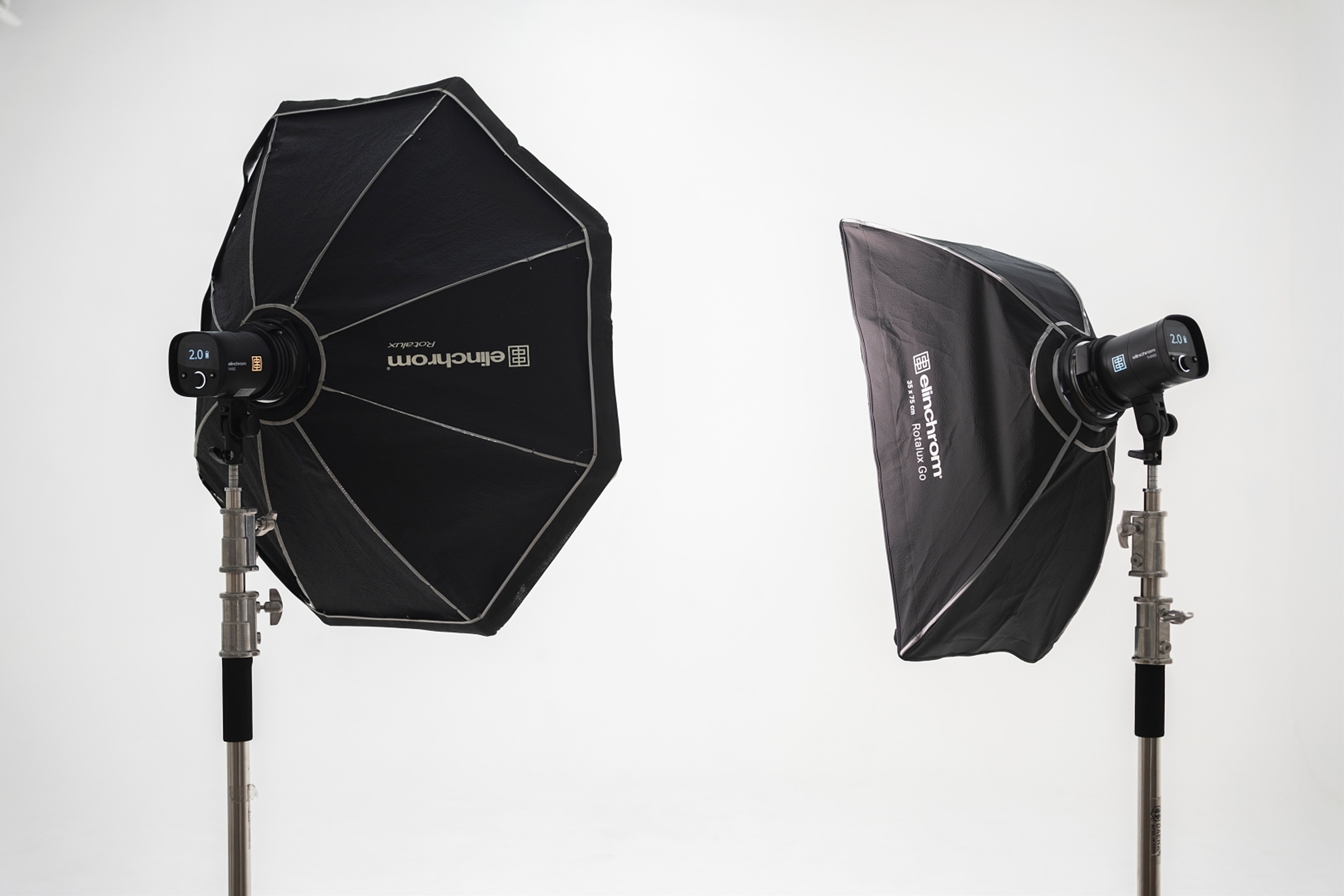 호리존트 스튜디오 촬영을 진행할 때 3점 조명을 사용해야 한다는 의견도 있지만 개인적인 경험상 2점 조명만 사용해도 충분히 결과물이 좋았습니다. 2점 조명이란 두 개의 조명을 사용한다는 뜻으로 하나의 조명을 사용했을 때 발생하는 암부를 제2의 조명이 채워준다는 개념입니다. 그런데 호리존트 스튜디오는 사실상 사방이 반사판이라고 해도 과언이 아니죠. 즉 하나의 조명만 사용해도 결과물은 충분히 좋습니다. 위 사진은 대각선 상부에서 플래시를 조사하는 크로스 라이팅 세팅과 반대편에서 백 라이팅을 조사하는 세팅입니다. 크로스 라이팅은 피사체의 전체적인 조도를 채워주고 백 라이팅은 피사체의 윤곽에 림 라이트를 만들어줍니다. 림 라이트는 피사체의 입체감을 살려주는 역할을 하죠.