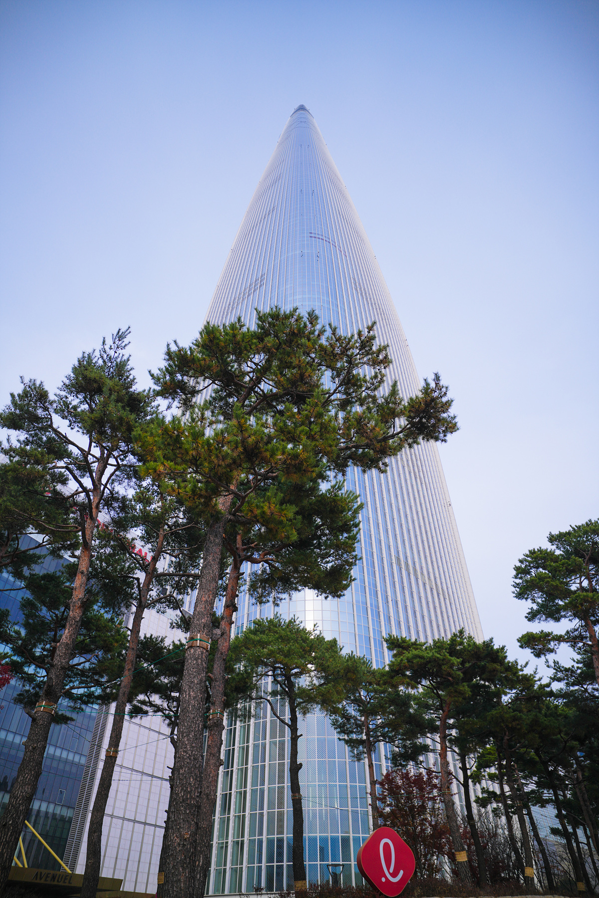 사거리를 건너지 않고도 세로 화각으로 롯데타워를 쉽게 담을 수 있을 정도입니다.