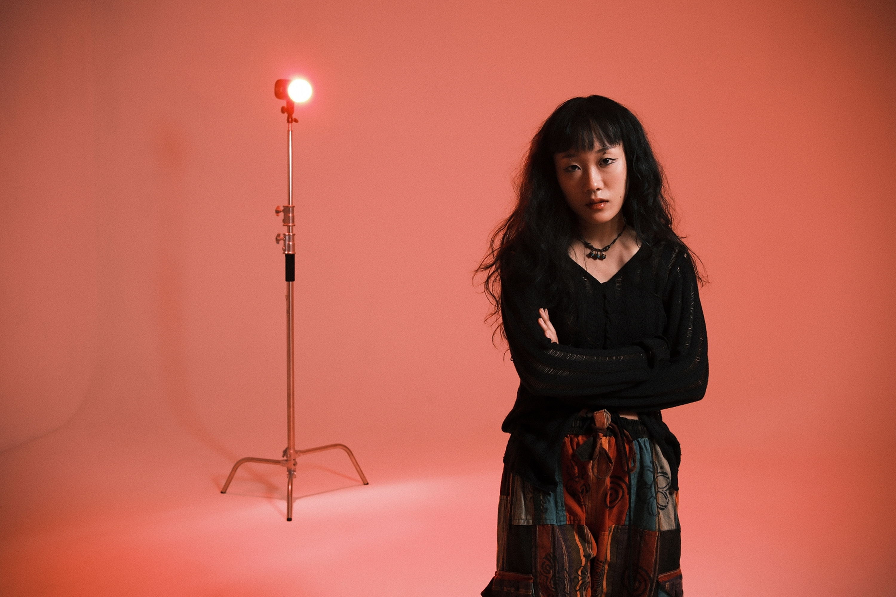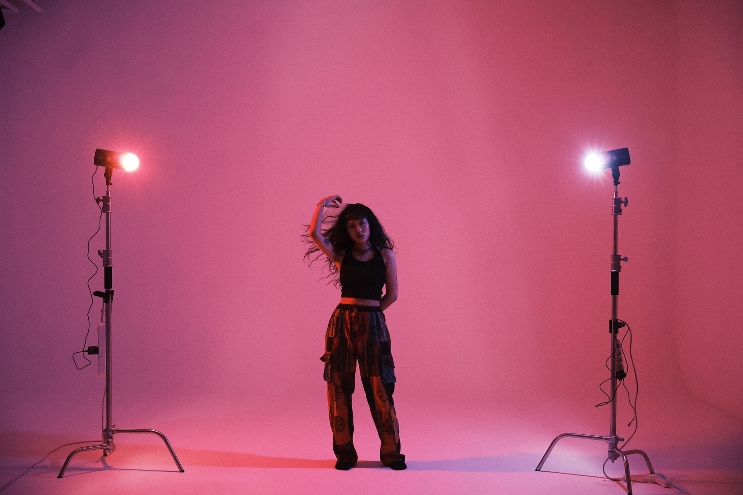 촬영 방법은 단순합니다. 원하는 색상의 OCF 컬러 돔을 플래시에 장착하고 그것을 벽면에 조사하는 개념입니다. 중요한 점은 빨간색 컬러 돔을 사용한다고 해서 완전히 빨간색이 나오지는 않습니다. 카메라의 색온도와 픽쳐 스타일 그리고 조명의 광량에 따라 조금씩 다르게 표현되죠. 하지만 하나의 조명만 사용할 경우 배경만 색이 변하기 때문에 인물에 조사할 제 2의 플래시가 필요합니다. 인물에 조사할 플래시에는 빛을 좁게 조사할 수 있는 좁은 직사각형 형태의 Rotalux 스트립 박스를 활용했습니다. 이렇게 좁게 빛을 조사하는 이유는 빛이 넓을 경우 배경에 영향을 주기 때문이죠. 즉 배경과 피사체에 떨어지는 빛을 분리하는 것이 핵심입니다.