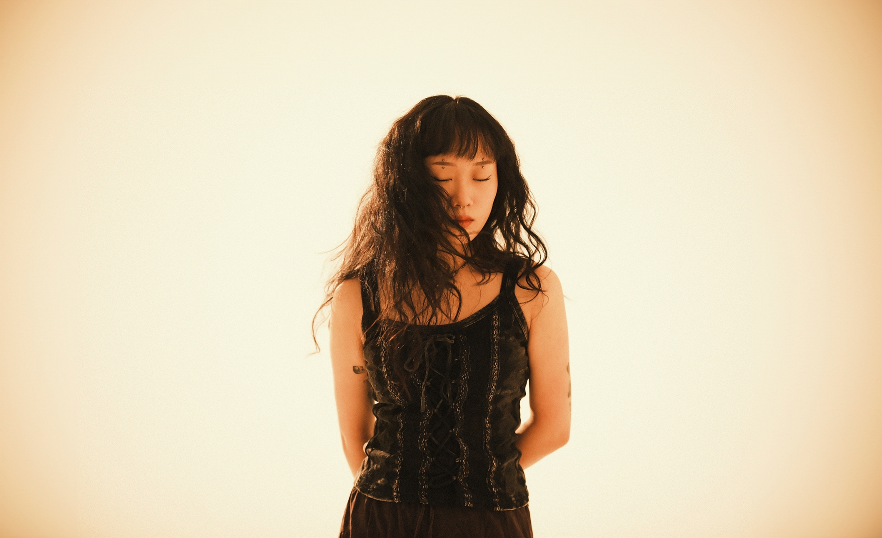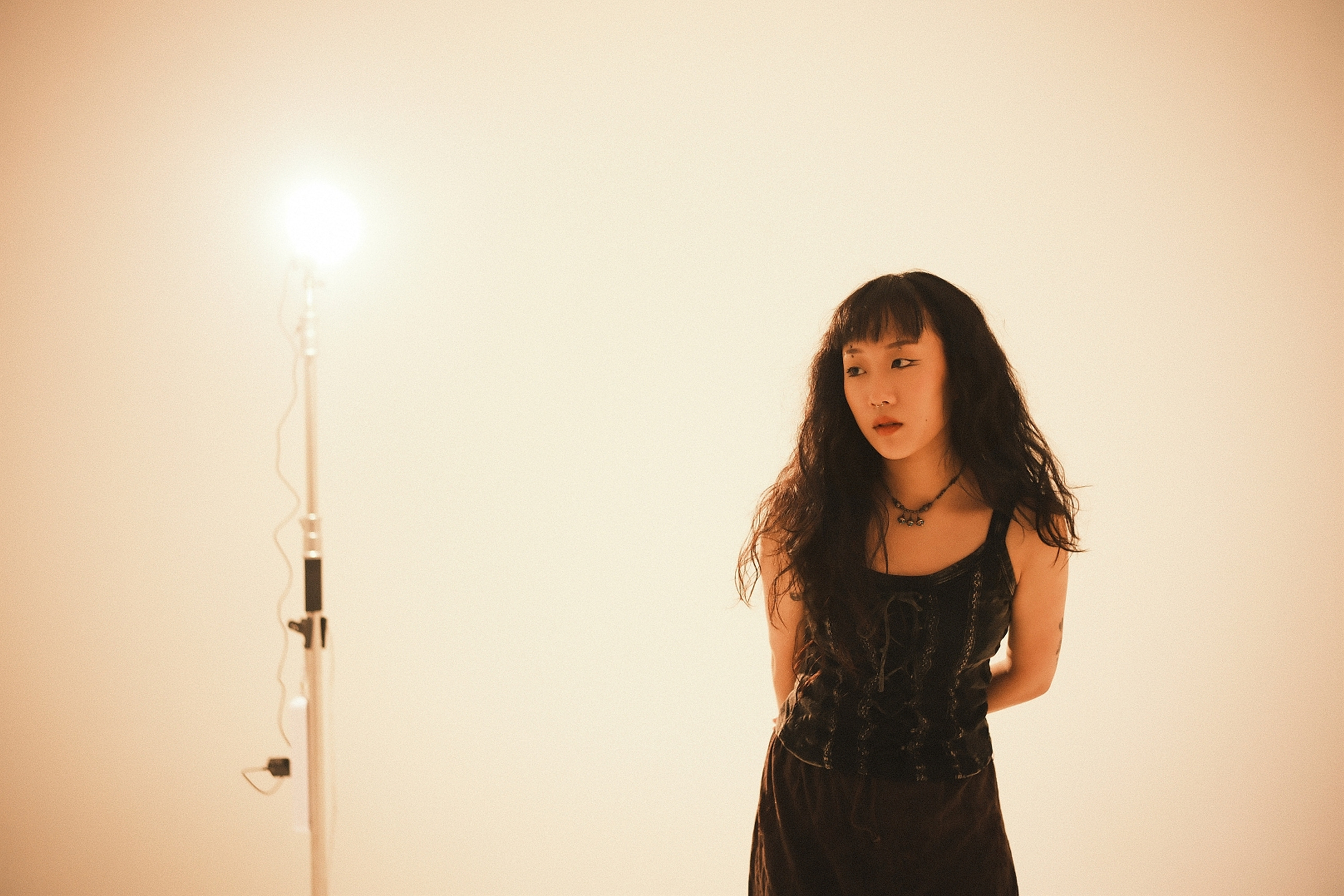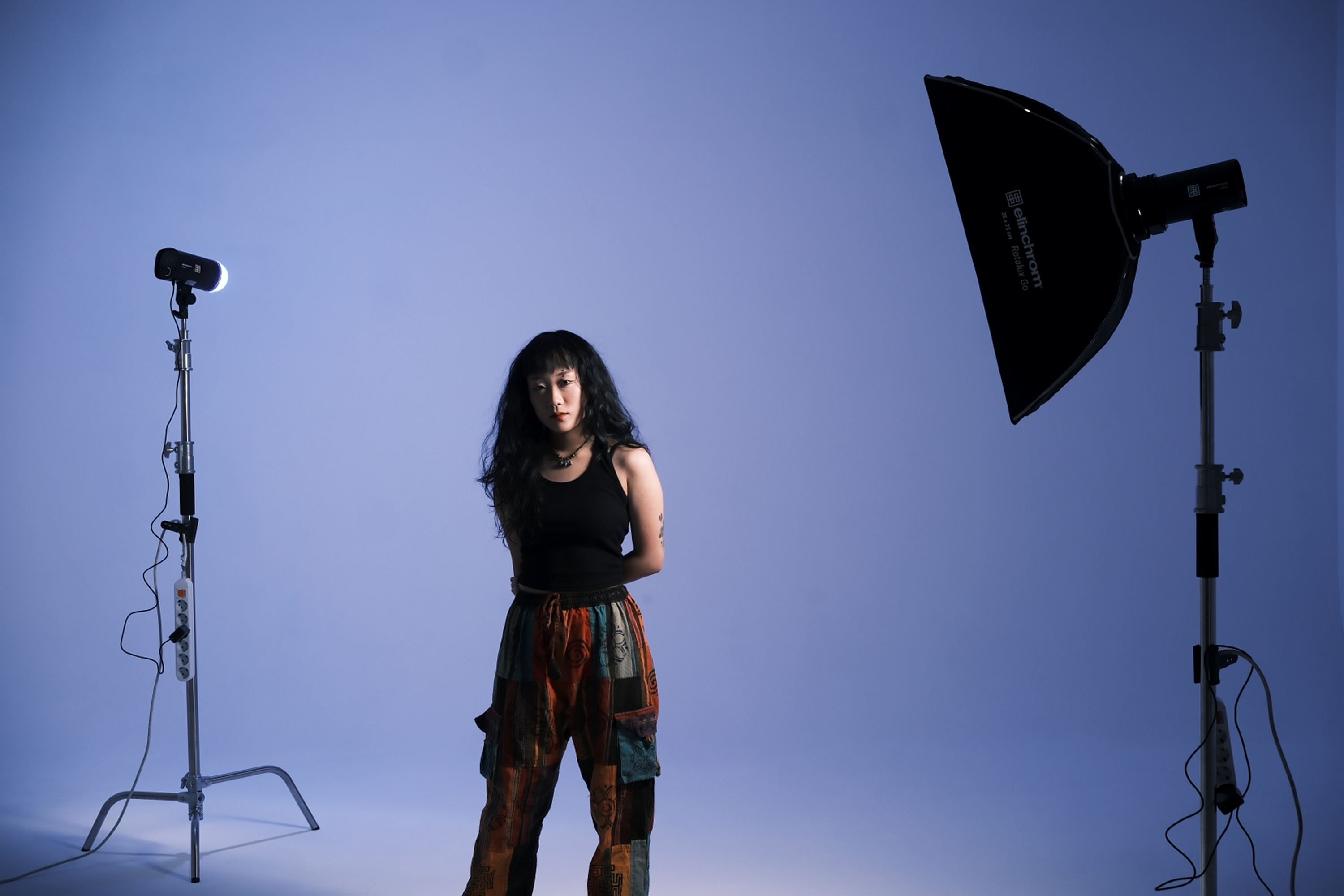 빛을 좁게 연출하는 Rotalux 스트립박스를 활용하여 인물에 조사합니다.