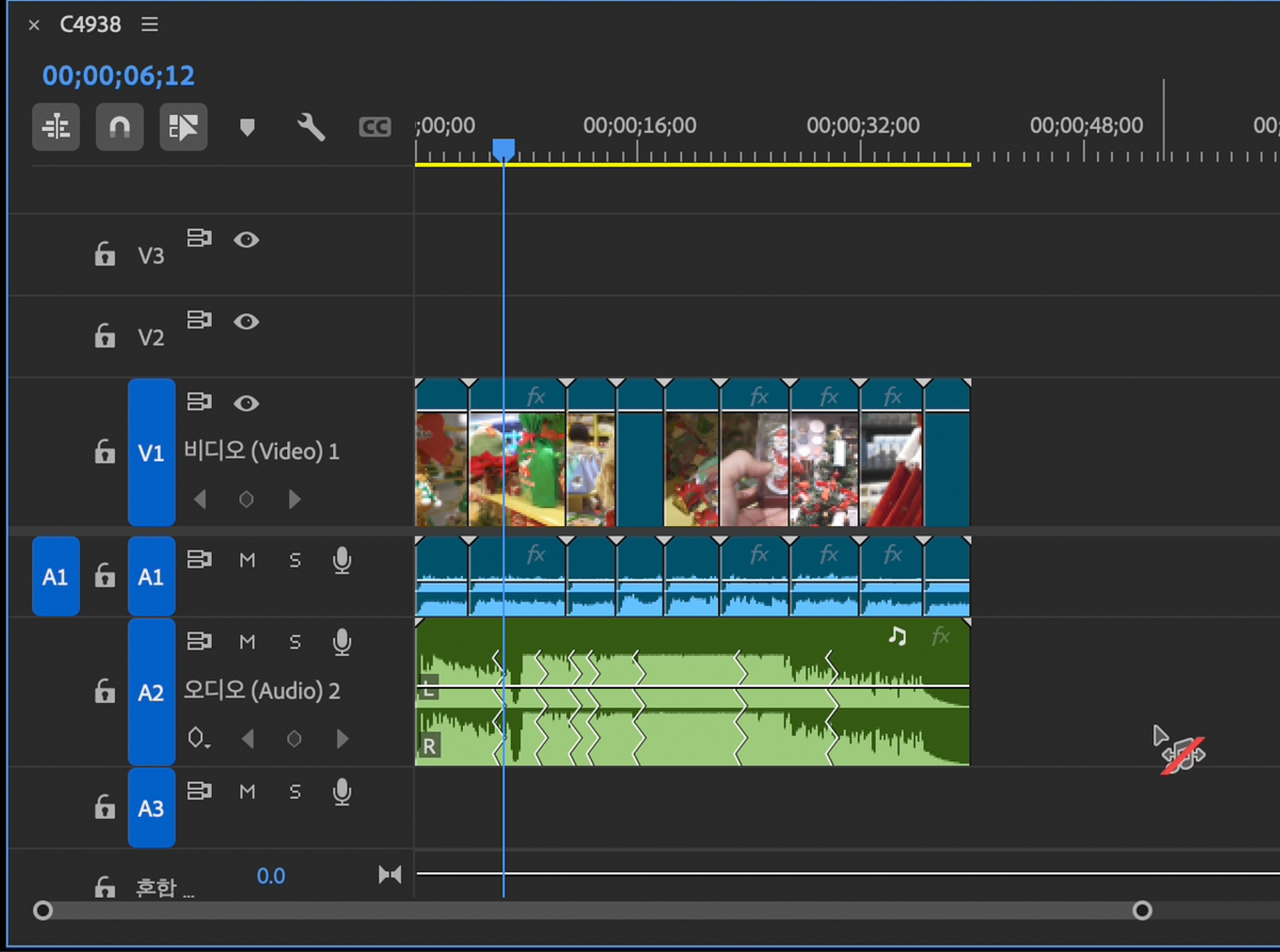 기본 영상 컷 편집을 마친 뒤 배경음악을 넣어줍니다.
