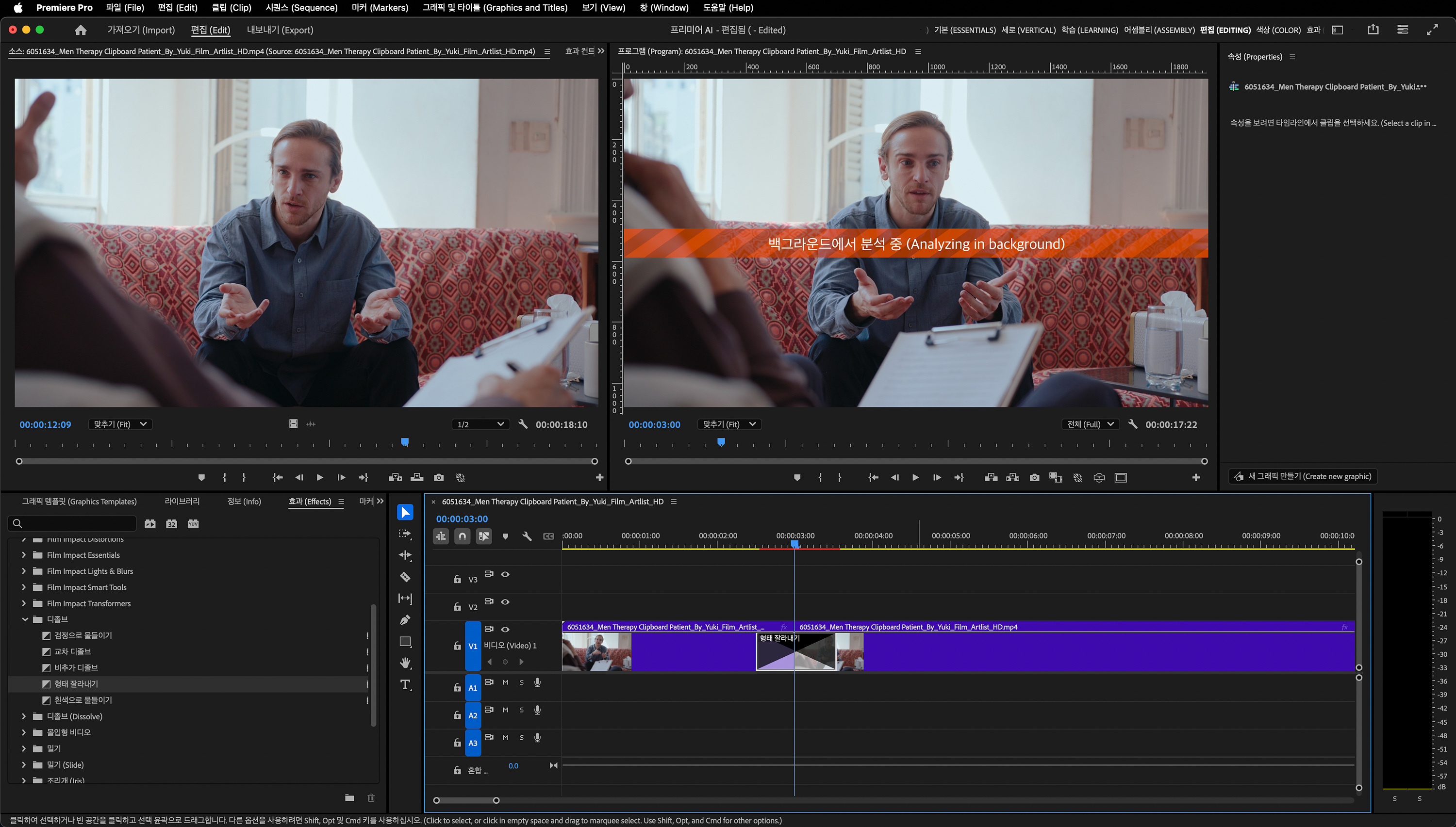 인터뷰 영상은 대화로 지정하고 오른쪽 패널을 살펴보겠습니다.