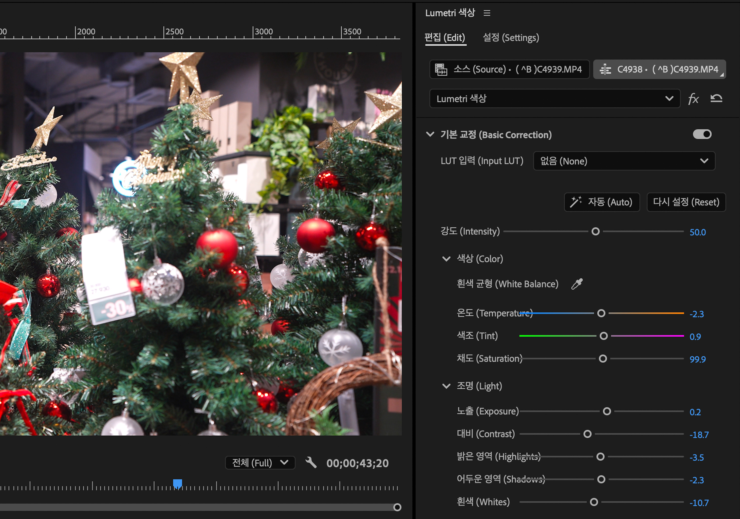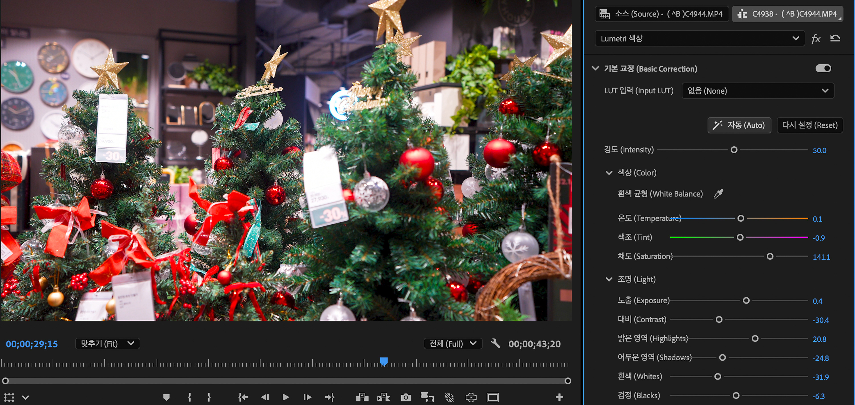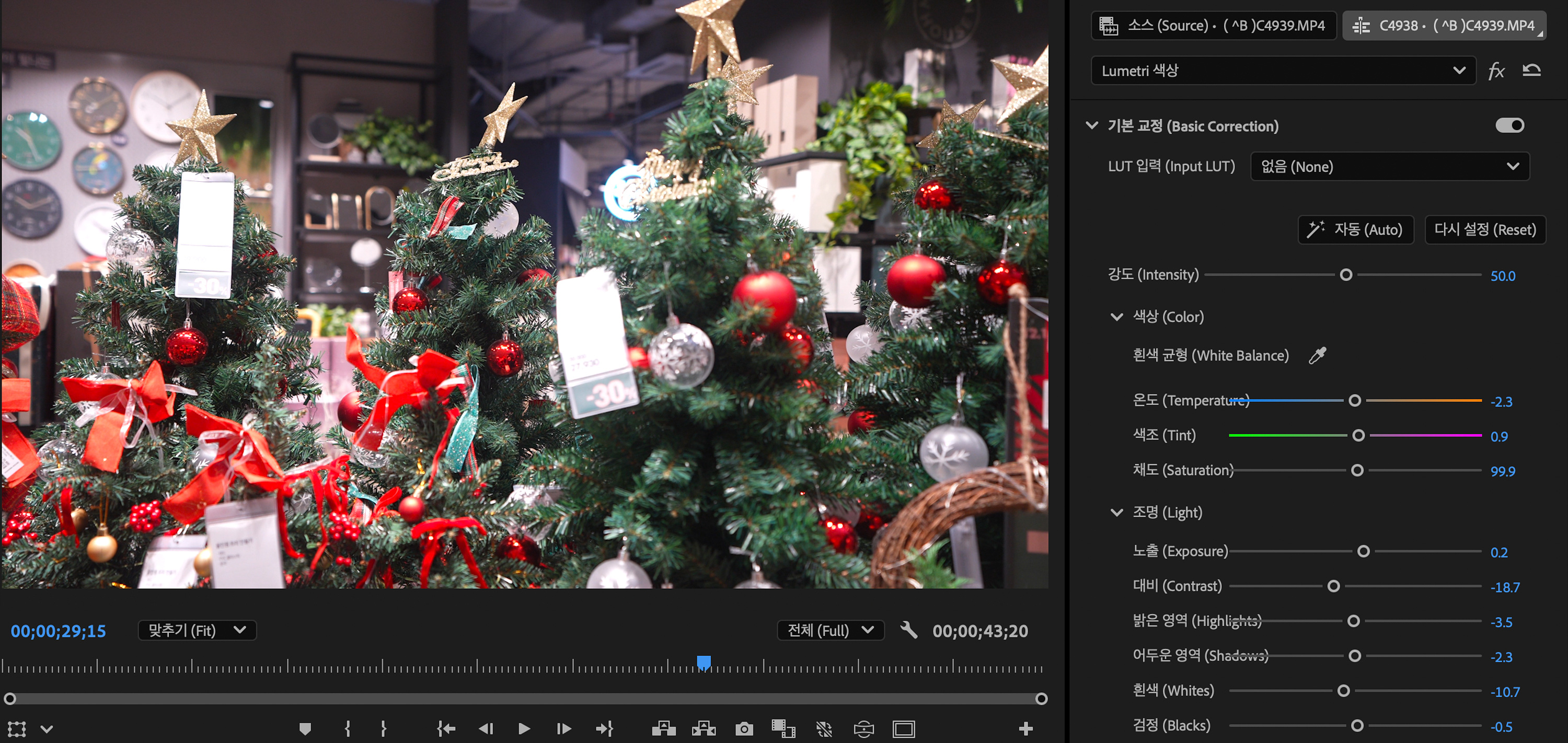 기본 색보정으로 영상을 간단히 개선할 때 사용됩니다. 시간이 없는 편집일 때 빠른 색보정을 적용할 수 있습니다.