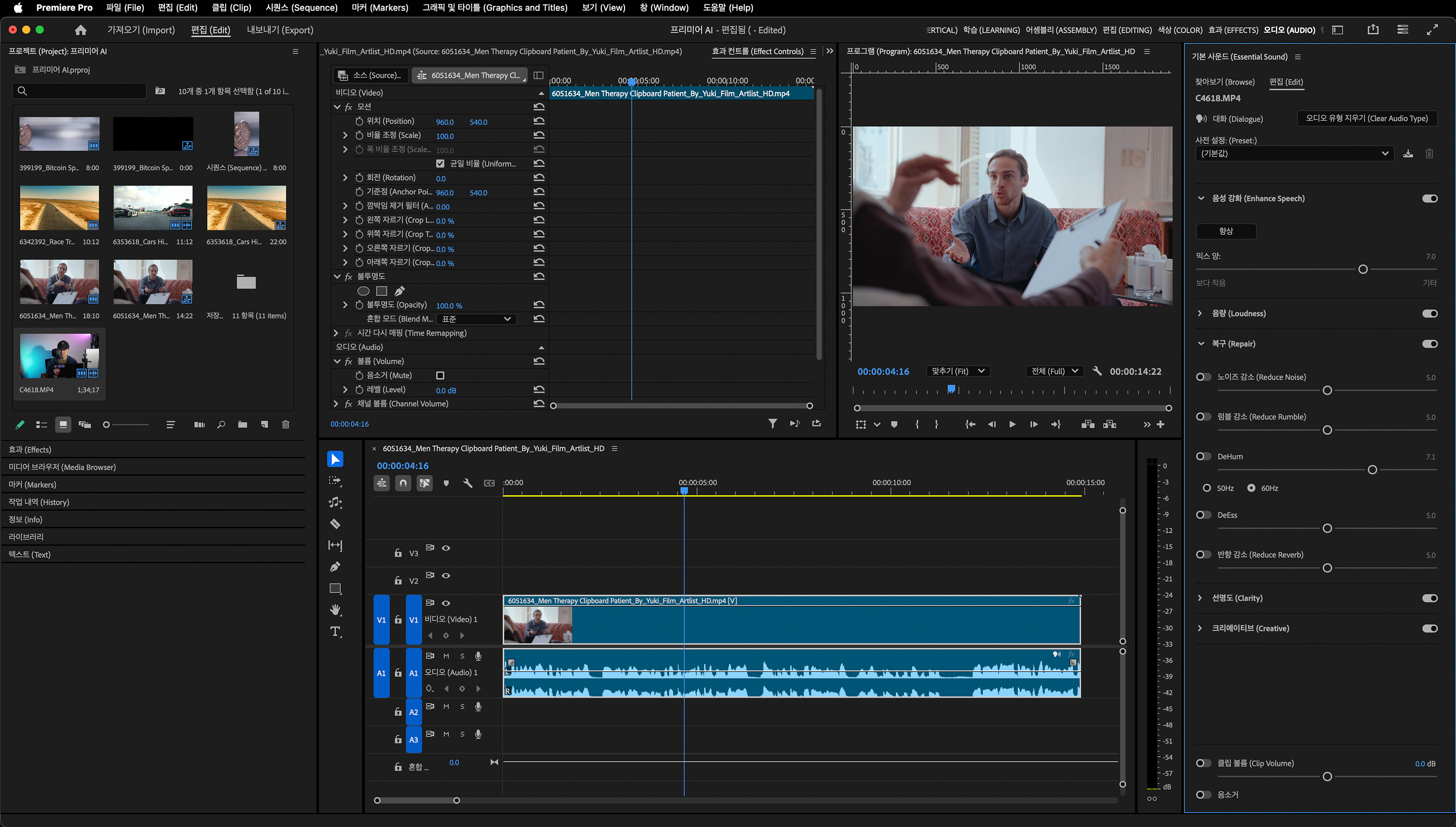 컷 편집의 어색함을 줄이고 인터뷰 영상이 매끄럽게 이어지도록 보완합니다.