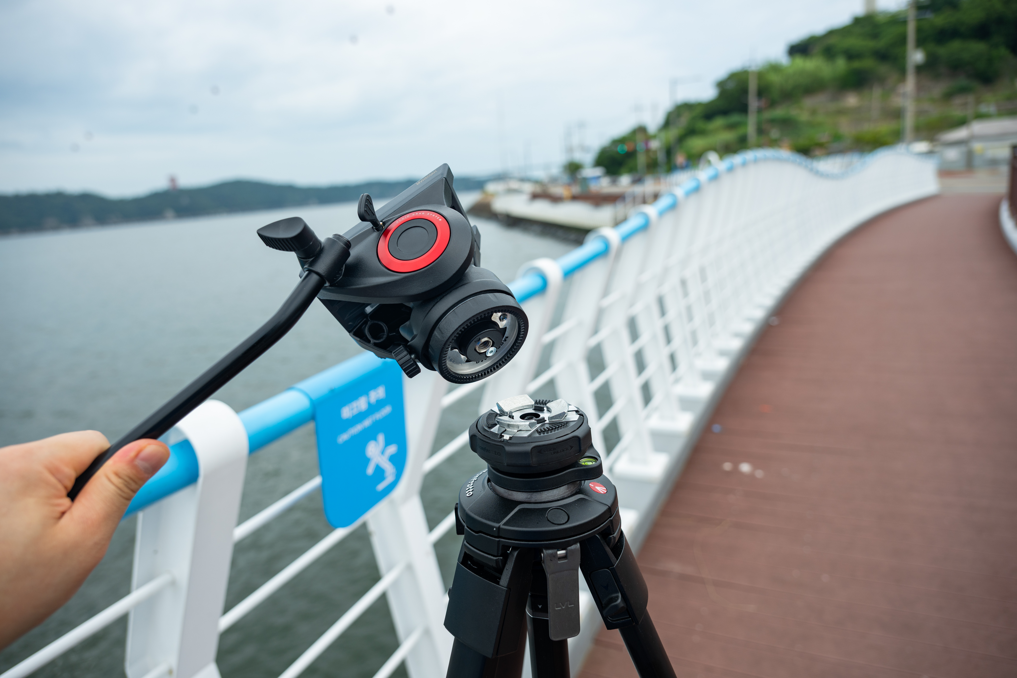 비디오 헤드의 경우 탈부착이 많이 필요하진 않을 텐데요. 사진 촬영 시 볼 헤드를 장착했을 경우 탈부착이 용이합니다. 저도 촬영에 있어서 70%는 삼각대 없이 촬영을 많이 하고 노출이 나오지 않을 때 삼각대를 쓰는 편인데, 헤드 탈부착은 순간적으로 장면을 빠르게 포착할 때 기존 플레이트를 빼는 방식보다는 1~2초 빠를 수는 있을 것 같습니다. 고요한 풍경 촬영이 많은 저는 그런 타임이 많이 없어서 유용하게 쓰이진 않았습니다.