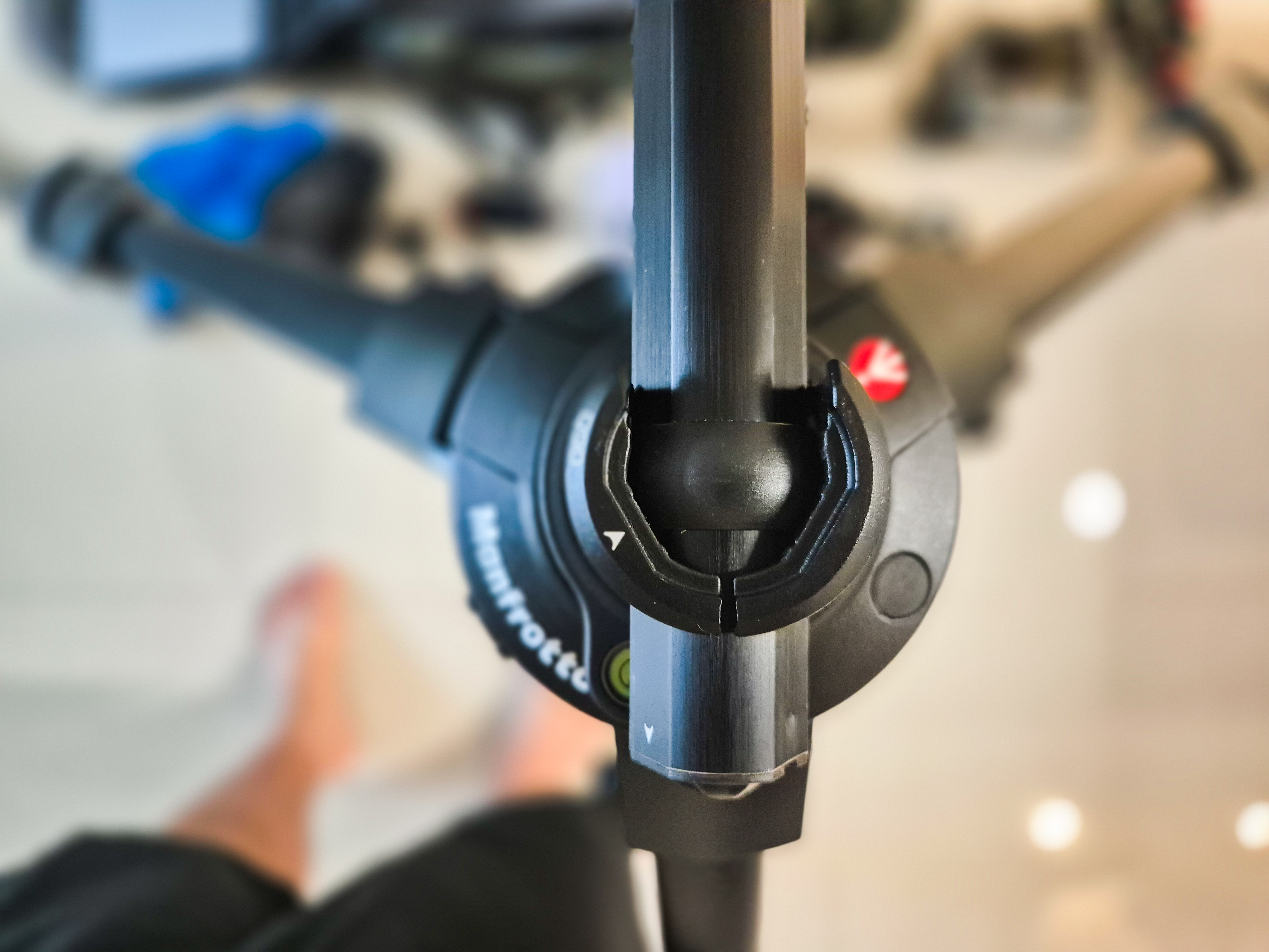 각 위치는 카메라 무게에 따라 고정할 수 있습니다. 삼각대 센터 컬럼에 이 기능이 있고 없느냐에 따라 촬영 현장에 크게 구애받지 않고 카메라를 설치할 수 있습니다. 특히 산 정상 덱에서 삼각대를 펼쳐야 할 경우 이 기능은 아주 요긴하게 쓰입니다.