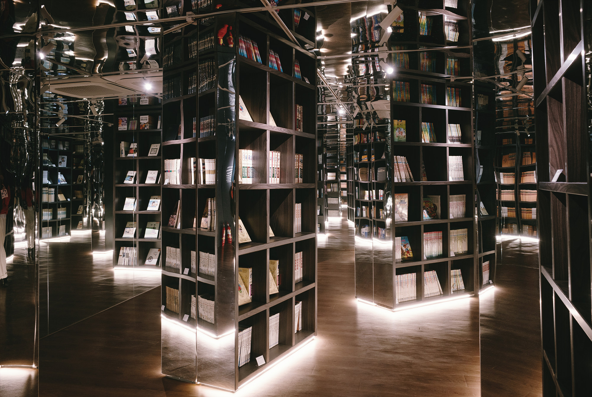 첫 번째 공간인 '책과 거울의 방'에 들어서면, 사방을 둘러싼 거울 속으로 빛과 책이 반사되며 장관을 만든다. 곳곳에 있는 거울에 흠칫 놀라기도 하고, 오랜 추억 속에 있던 책들 사이를 걷다 보면 마치 시간의 틈을 오가는 듯한 기분이 든다.