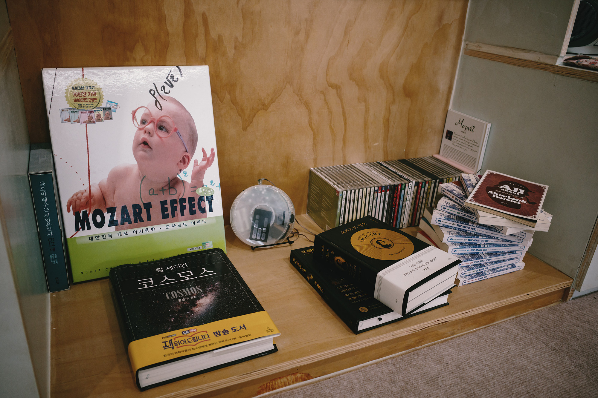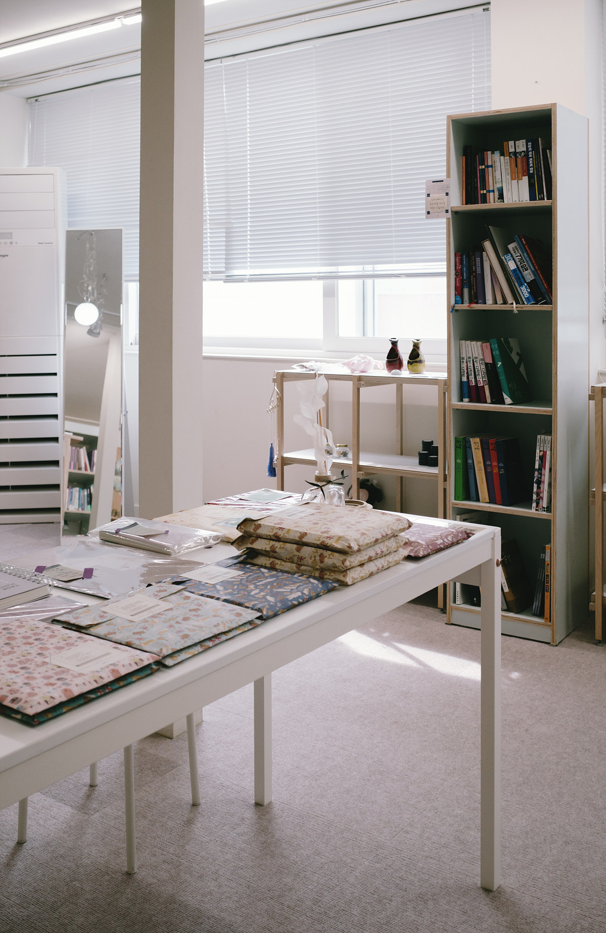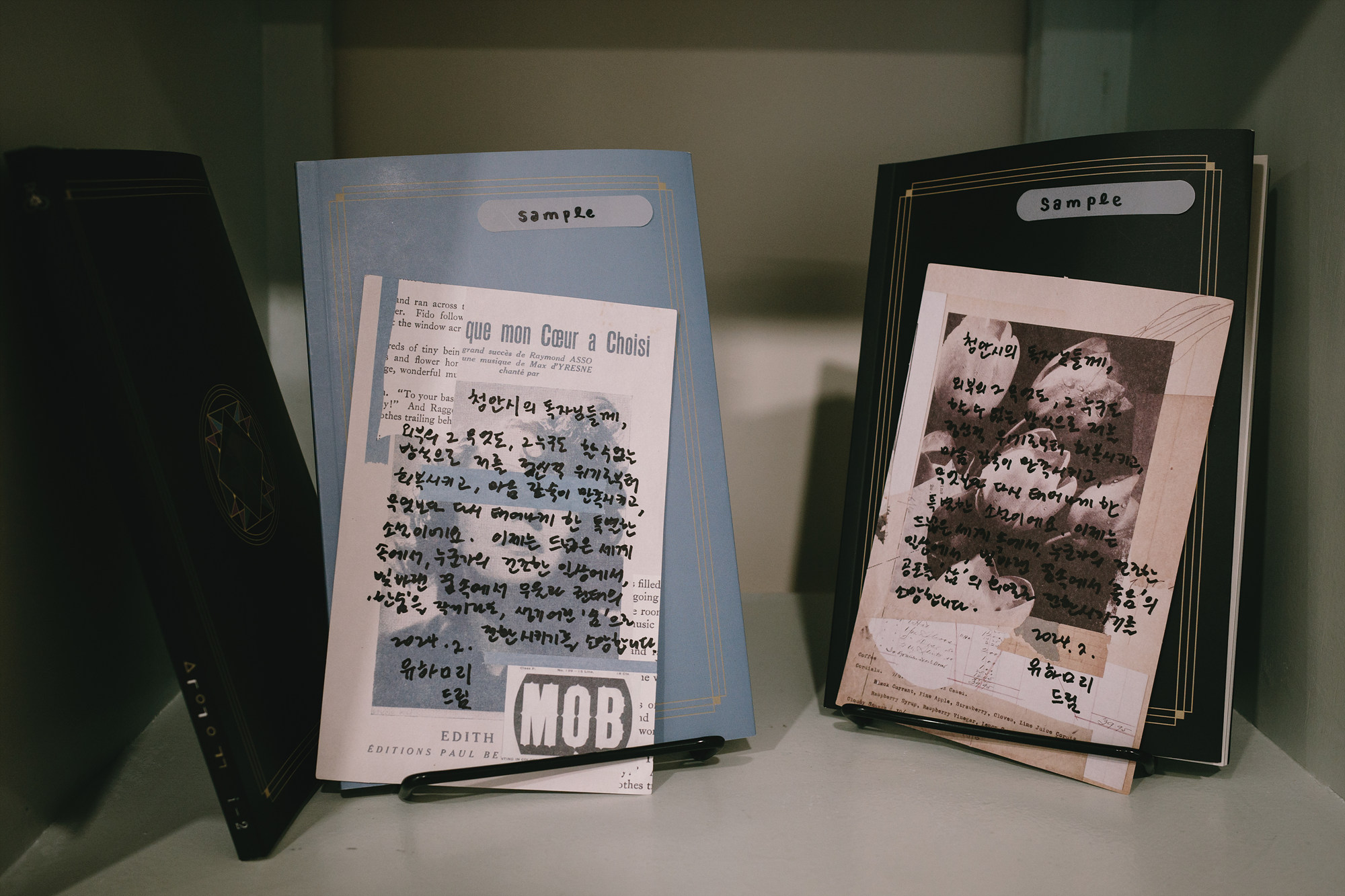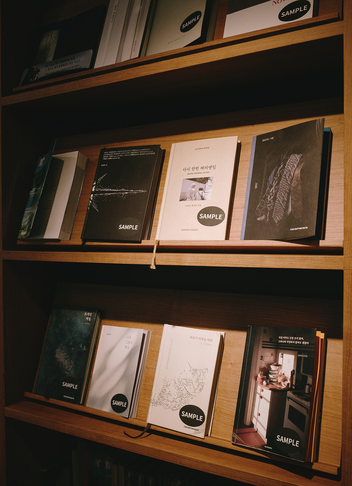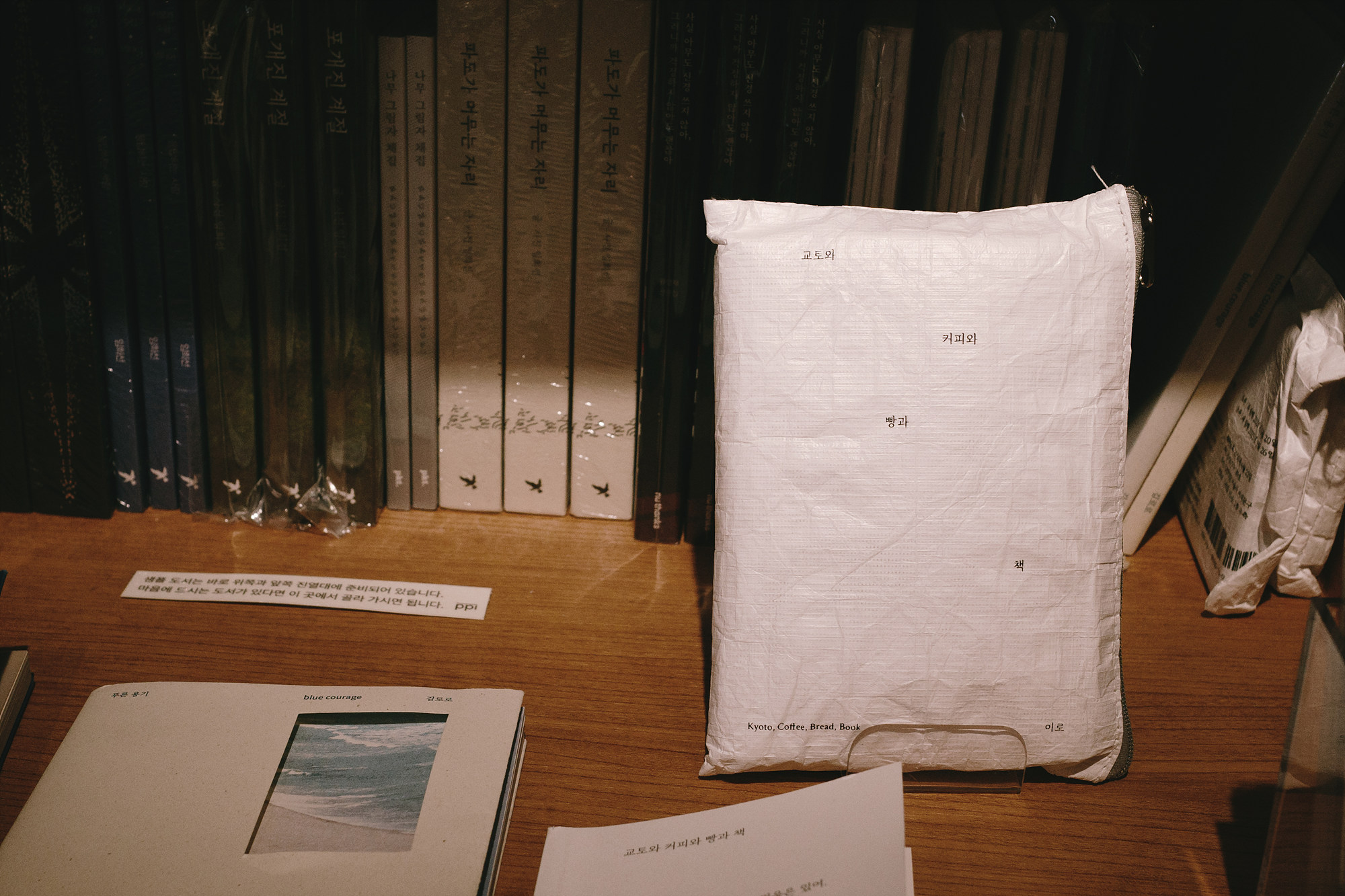 책장은 빽빽하지 않고, 손을 뻗으면 바로 닿을 만큼 가까이 놓여 있다. 주로 음악 관련 서적이 눈에 띄었고, 한쪽에는 '선물용 블라인드 책'이 자리하고 있다. 제목 대신 짧은 주제가 적힌 포장지에 감춰진 책들, 어떤 내용을 만나게 될지 미리 알 수 없다는 점에서 선물의 방향이 조금 달라진다. 주는 사람도, 받는 사람도 같은 만큼의 호기심을 가진 셈이라 재미있는 선물이 될 것 같다.