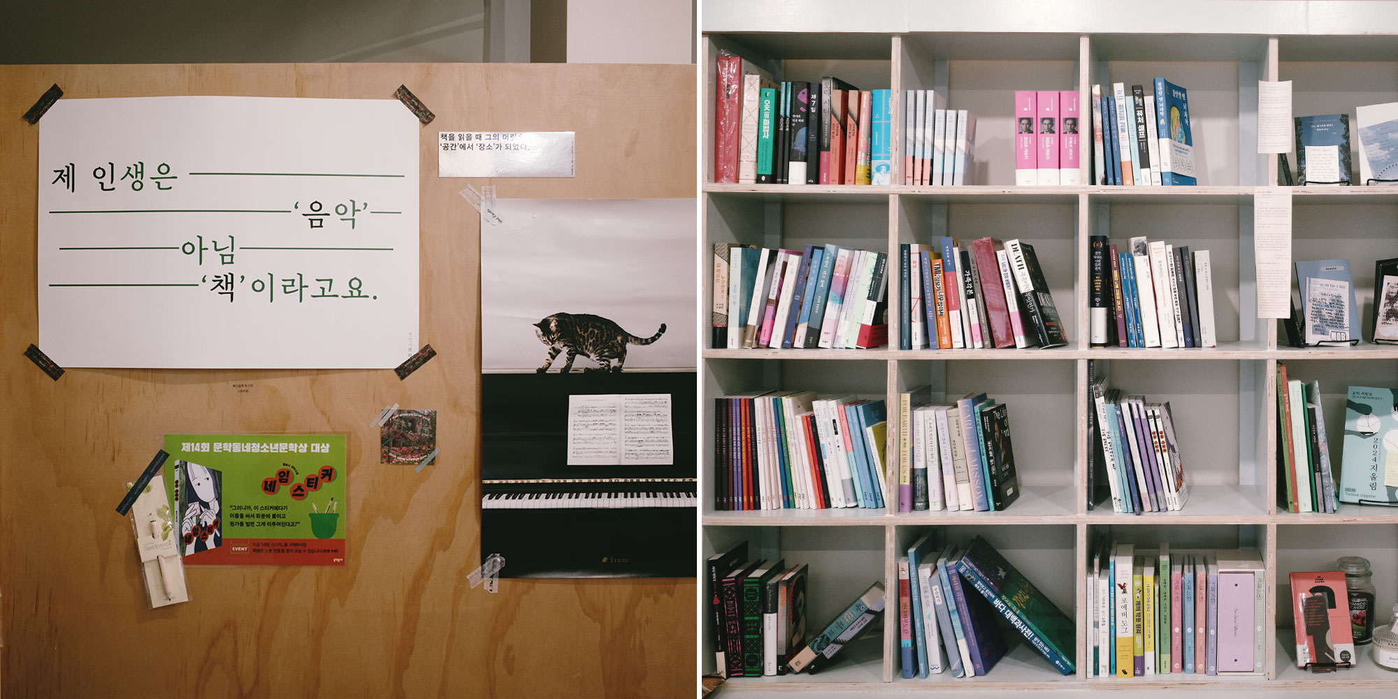 책장 사이사이에 놓여 있는 따뜻하고 정갈하게 쓰여있는 문구를 읽다 보면, 사장님의 책을 대하는 태도가 자연스레 느껴진다. 서점의 온도는 책이 아니라 사람이 만드는 것이라는 말이 떠올랐다. 이곳에서는 평소보다 더 천천히, 즐겨보기를 추천한다.