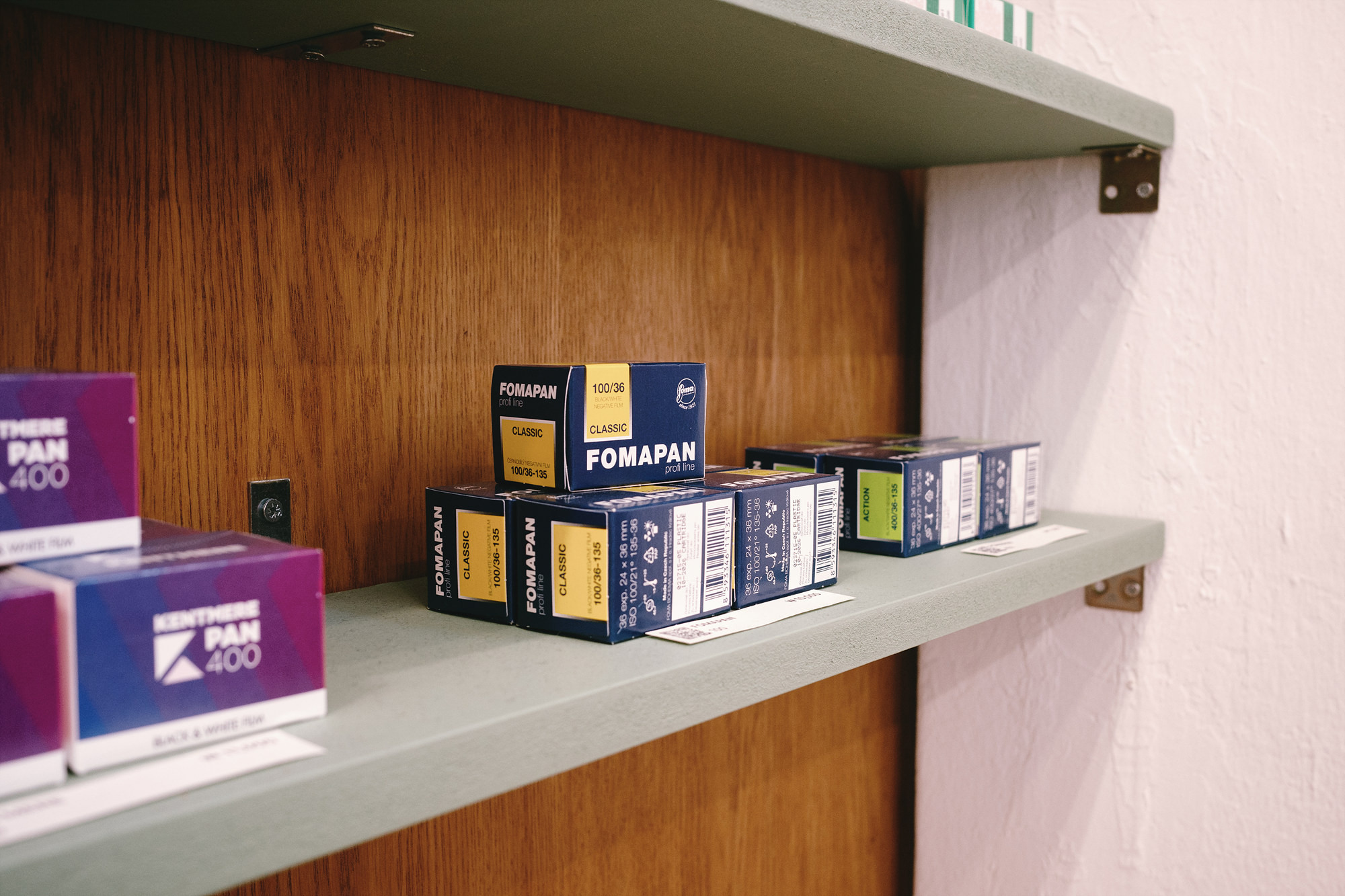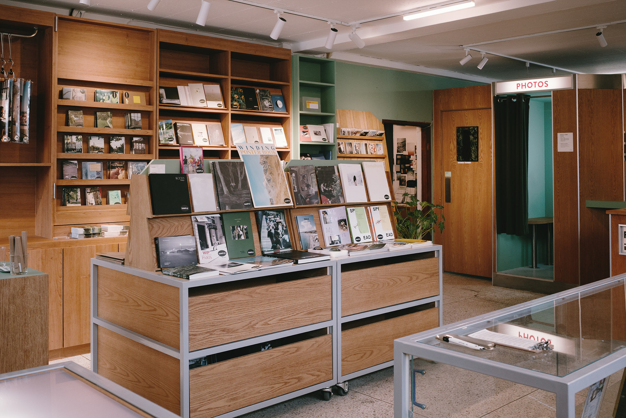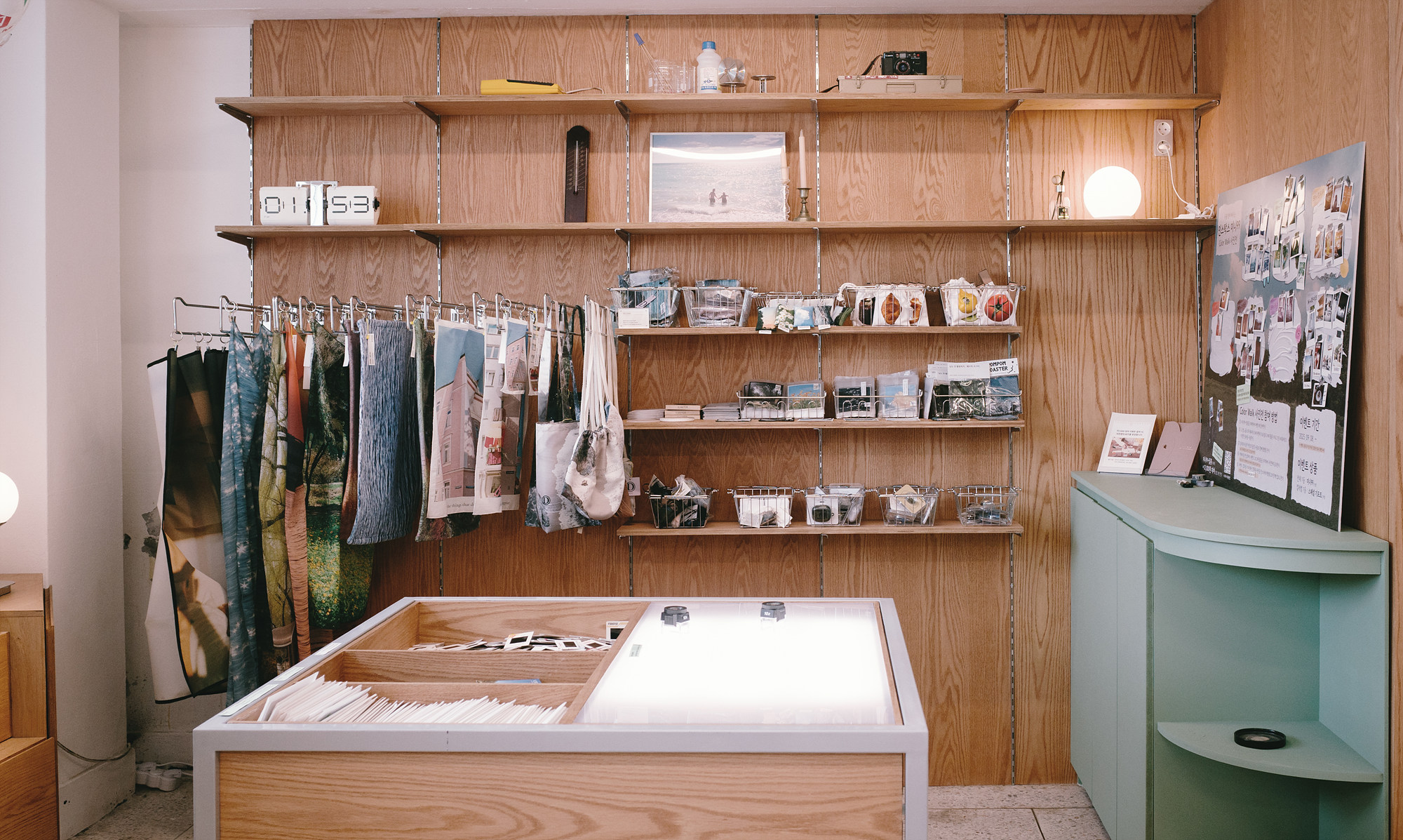 또 공간 안쪽에는 셀프 촬영이 가능한 포토 부스가 있다. 가벼운 마음으로 한 컷 남기기 좋은 구조라, 소중한 순간을 바로 기록할 수 있다. 반대편에는 필름 현상 수거함과 안내문이 놓여있는데, 이곳은 충무로 현상소 '일삼오삼육'과 함께 운영되는 곳이라고 한다. 필요한 경우 이곳에서 바로 현상을 맡길 수 있어서 편리할 것 같다.